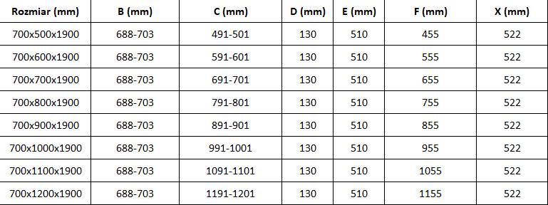 Veľkosť: 70x70 cm (dvere 70 cm, stena 70 cm)