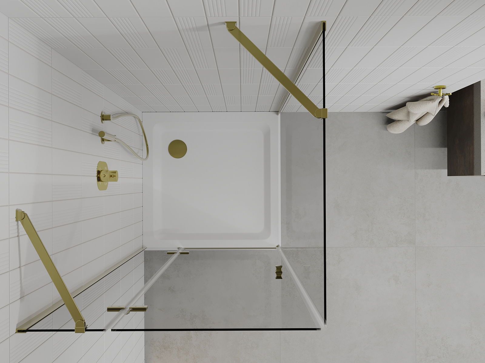 Mexen Roma sprchový kút s otočnými dverami 70 x 70 cm, priehľadný, zlatý + vanička Flat - 854-070-070-50-00-4010
