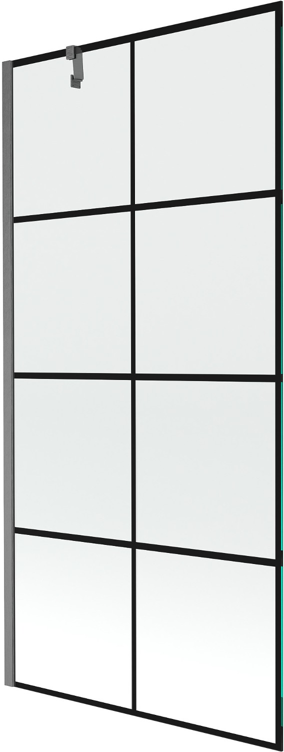 Mexen Next vanový paraván 1-krídlový 90 x 150 cm, čierna mriežka, kartáčovaná gun grey - 895-090-000-00-77-66