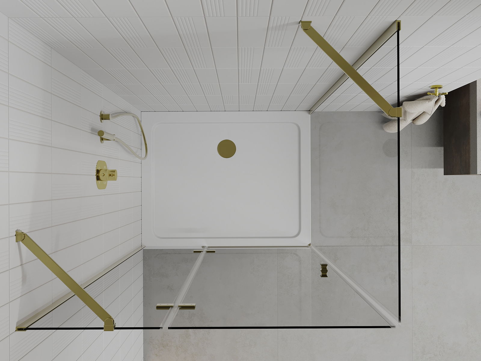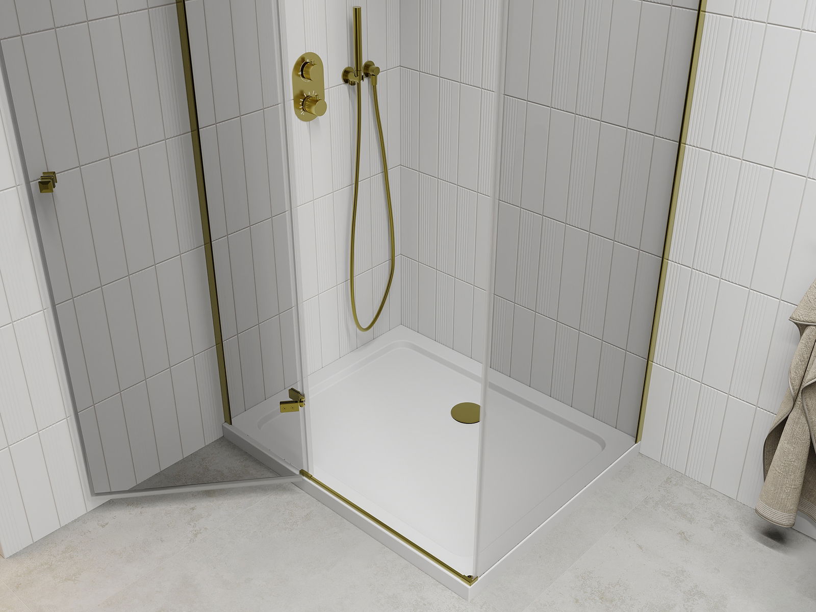 Mexen Roma sprchová kabína s otváracími dverami 110 x 70 cm, transparentná, zlatá + plochá vanička - 854-110-070-50-00-4010
