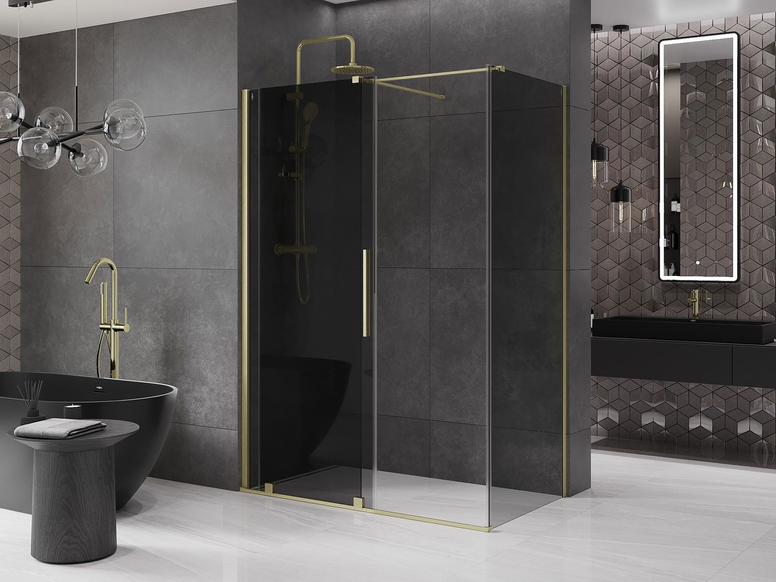 Mexen Velar posuvná sprchová kabína 160 x 85 cm, grafitová, brúsená zlatá - 871-160-085-41-55