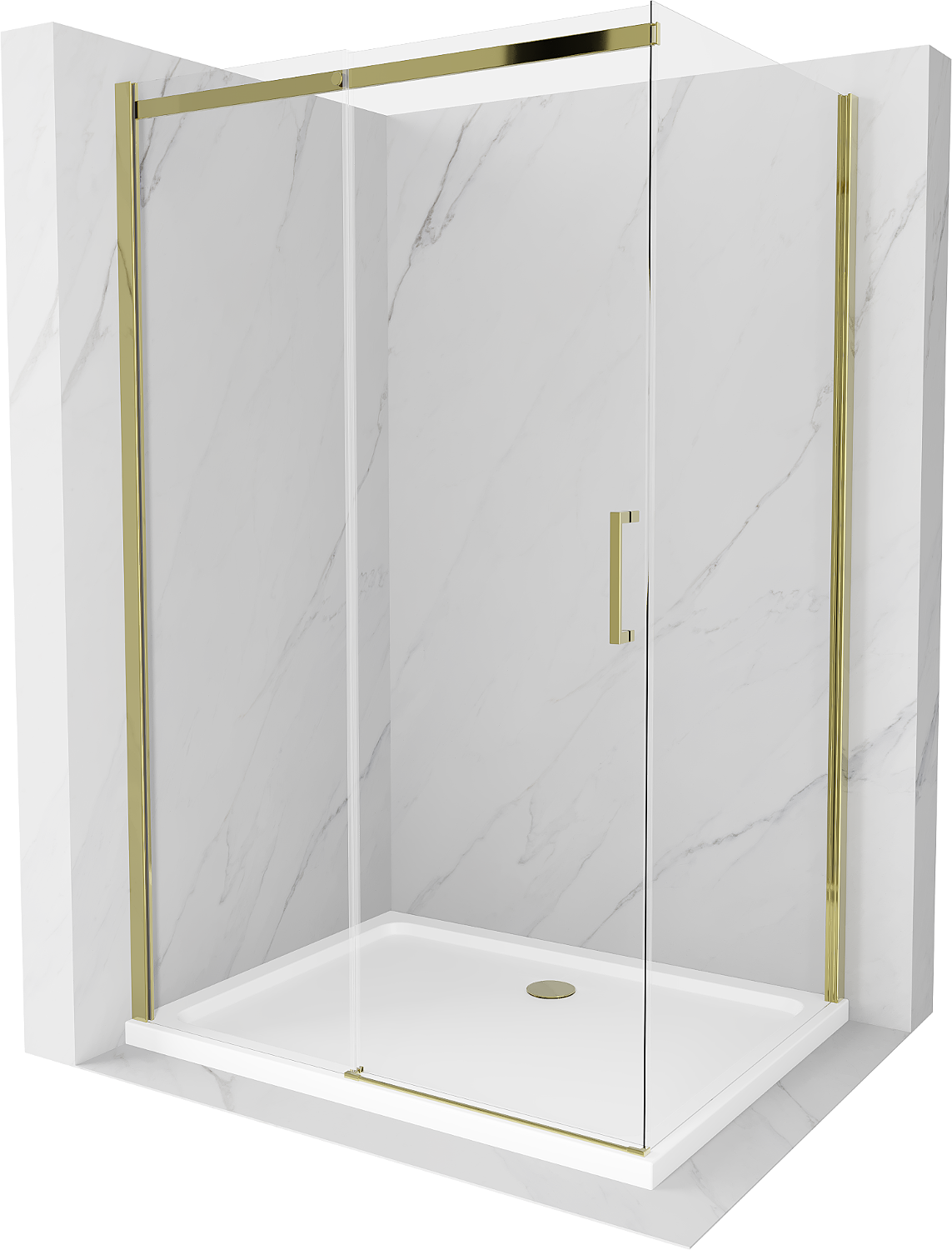 Mexen Omega posuvná sprchová kabína 120 x 80 cm, transparentná, zlatá + vanička Flat - 825-120-080-50-00-4010
