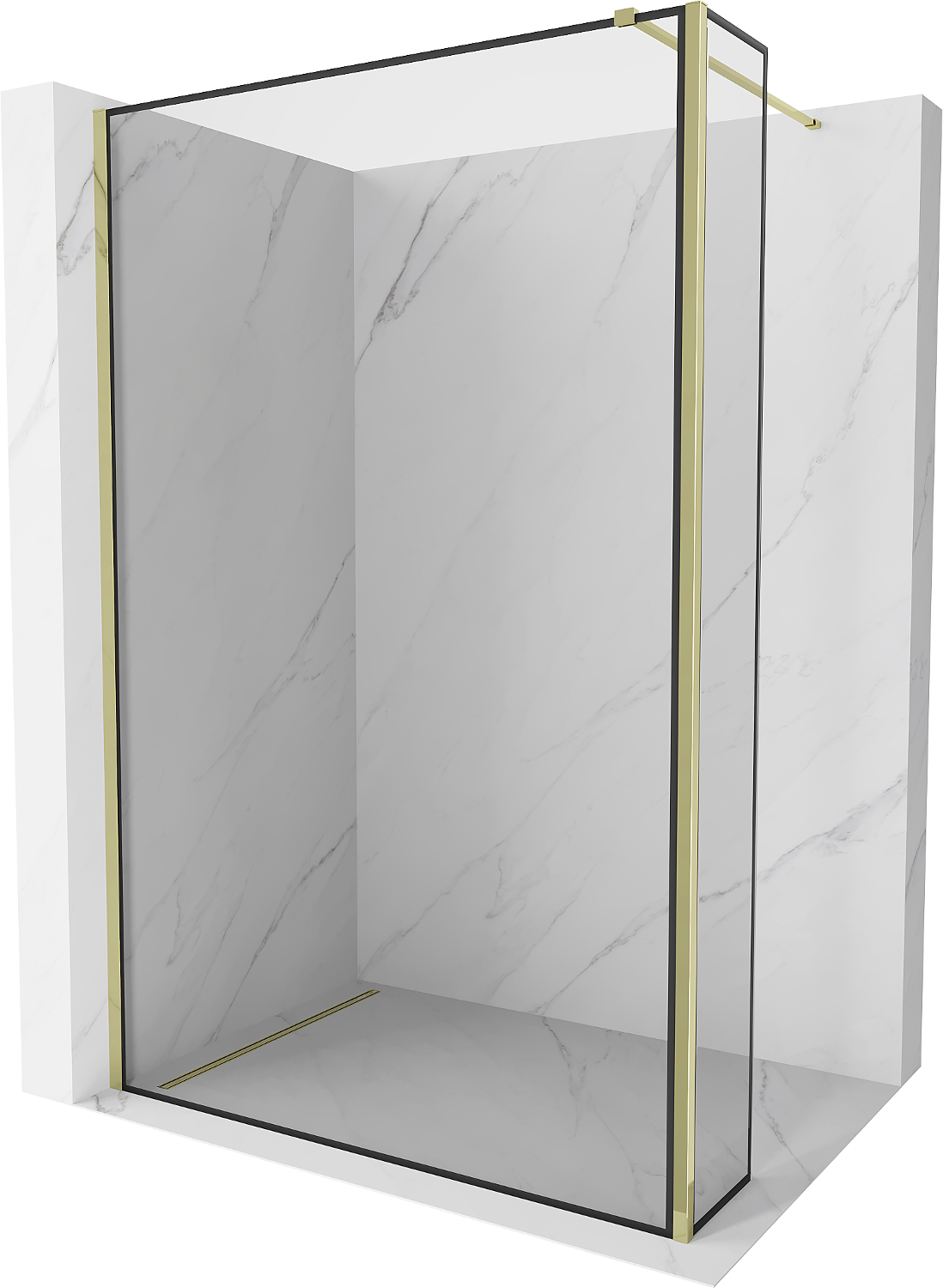 Mexen Kioto sprchová stena Walk-in 100 x 30 cm, čierny rám, zlatá - 800-100-212-50-70-030