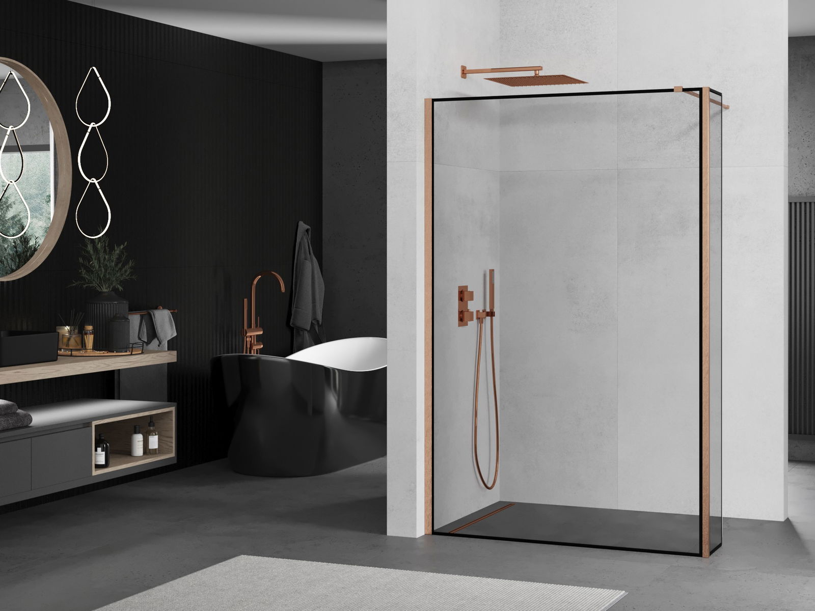 Mexen Kioto sprchová stena Walk-in 160 x 40 cm, čierny rám, brúsená meď - 800-160-212-65-70-040