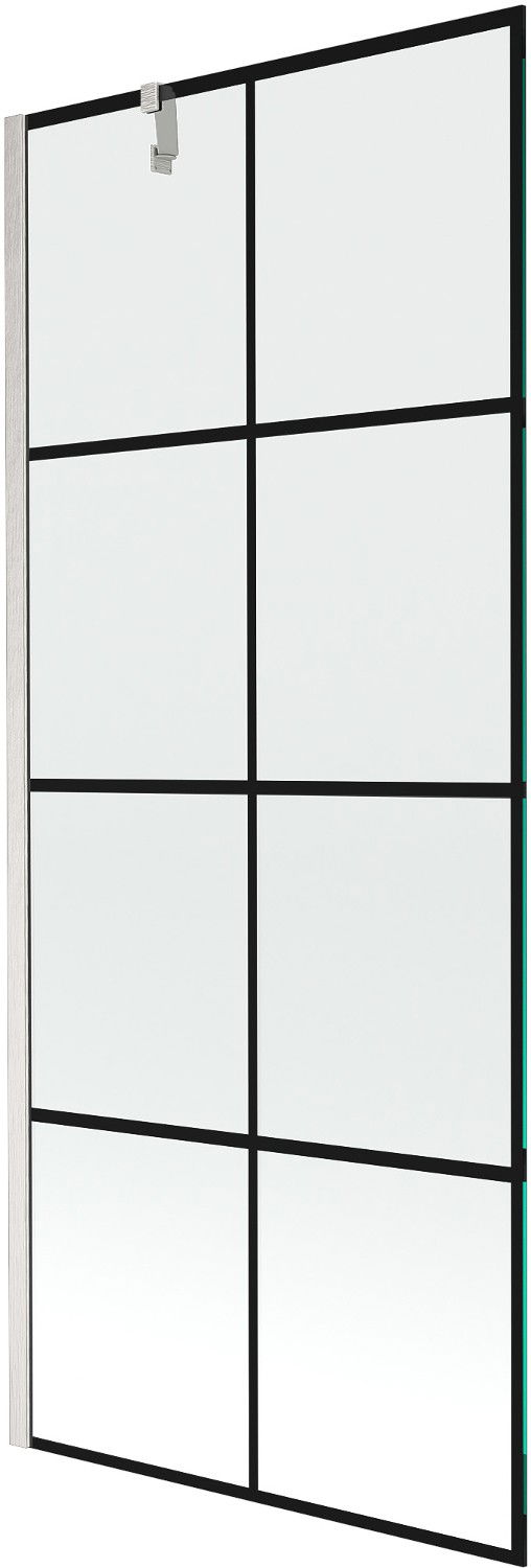Mexen Next vaňová zástena 1-krídlová 80 x 150 cm, čierna mriežka, brúsený nikel - 895-080-000-00-77-97