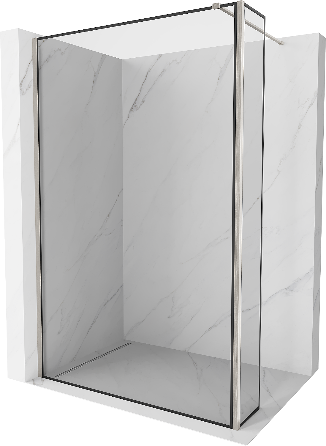 Mexen Kioto sprchová stena Walk-in 160 x 30 cm, čierny rám, brúsený nikel - 800-160-212-97-70-030