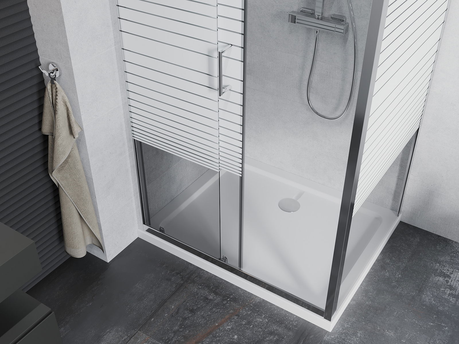 Mexen Apia zasúvacia sprchová kabína 100 x 90 cm, biele pruhy, chróm + sprchová vanička Flat - 840-100-090-01-20-4010