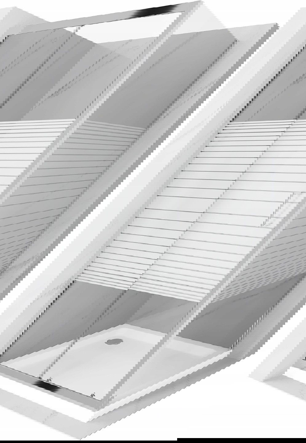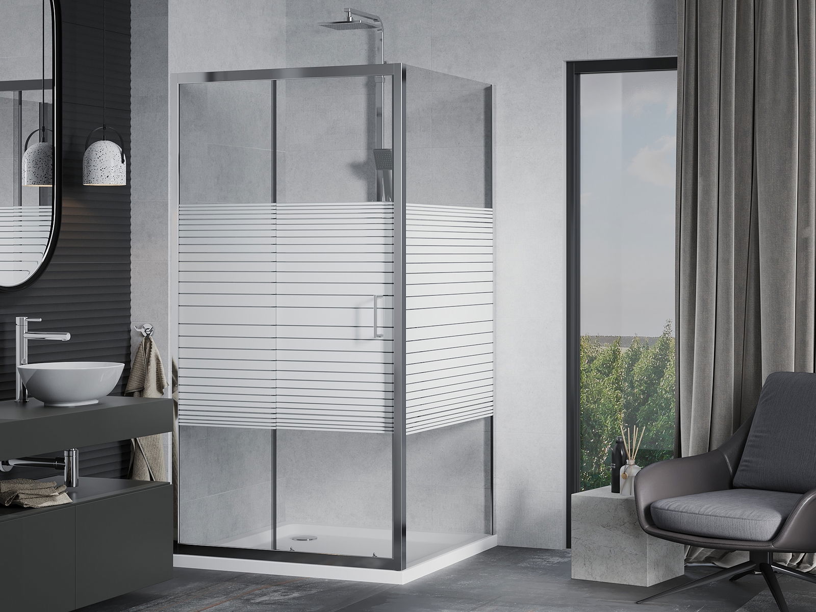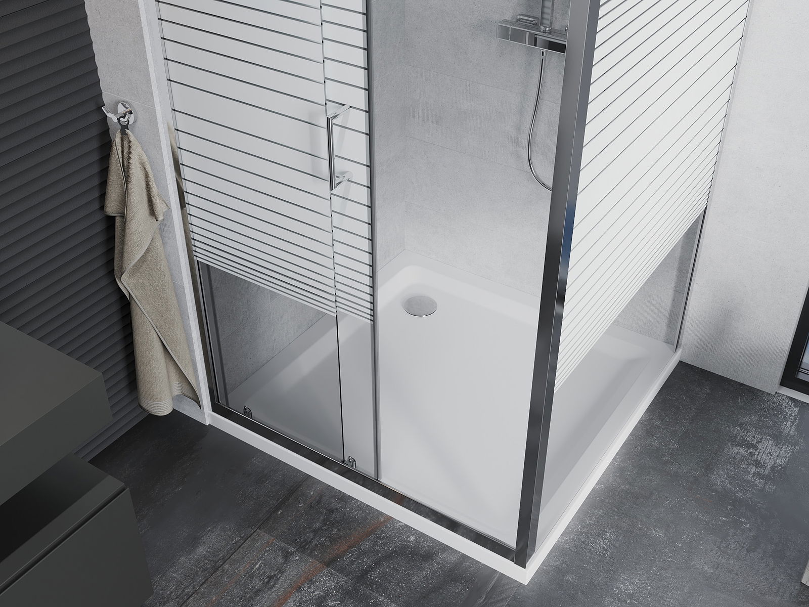Mexen Apia posuvná sprchová kabína 100 x 100 cm, biele pruhy, chróm + brodzik Flat - 840-100-100-01-20-4010