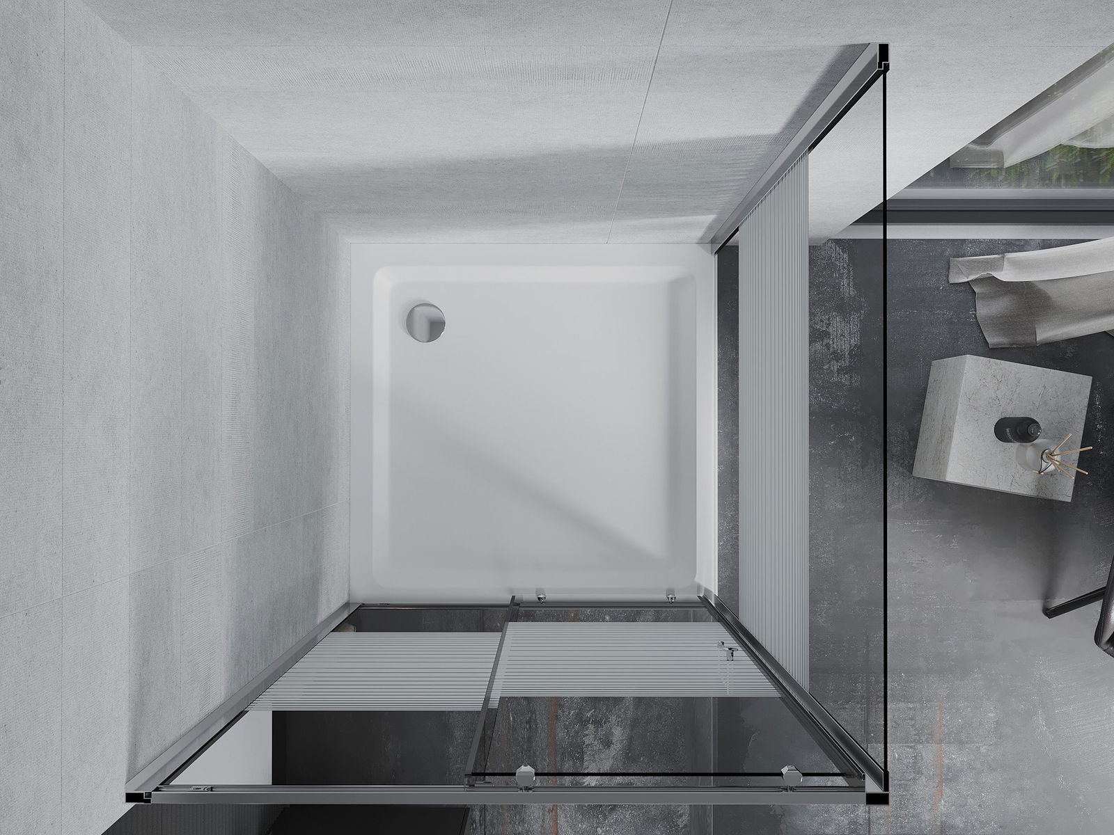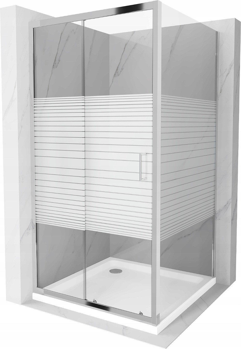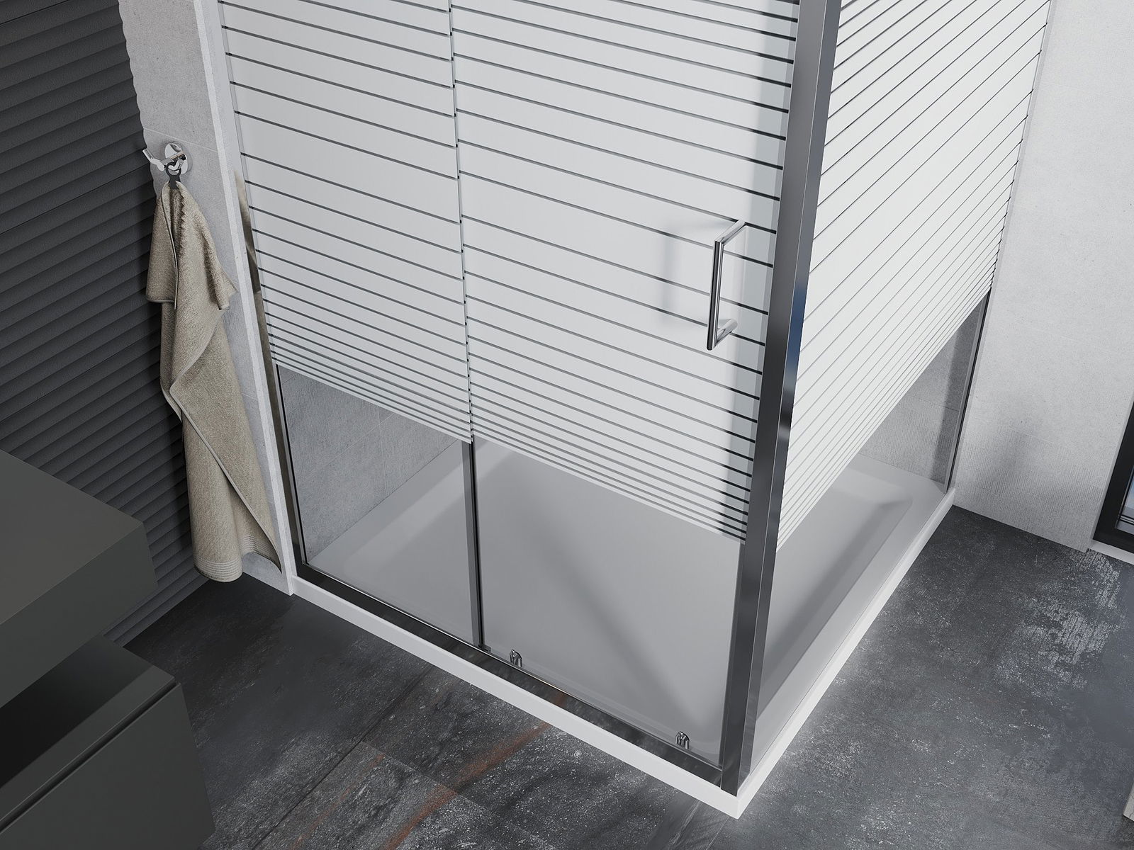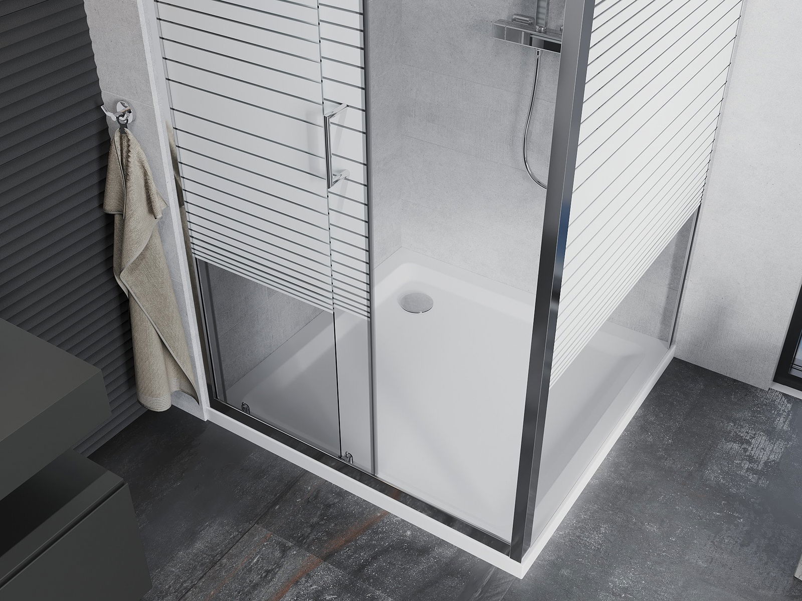 Mexen Apia posuvný sprchový kút 100 x 100 cm, biele pruhy, chróm + vanička Flat - 840-100-100-01-20-4010