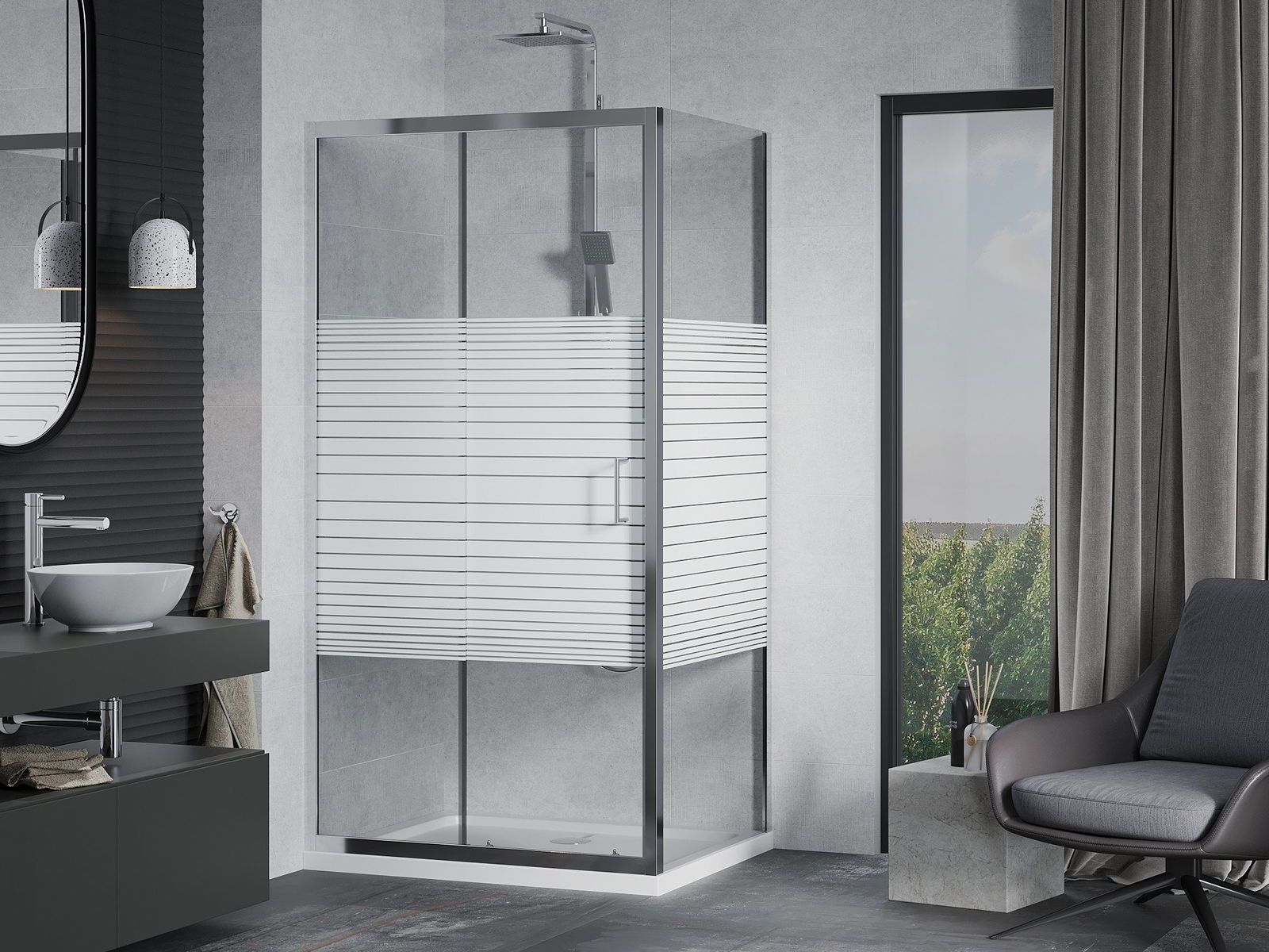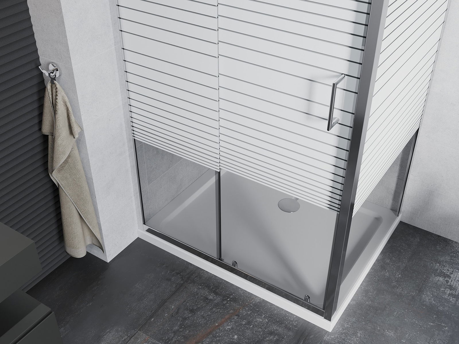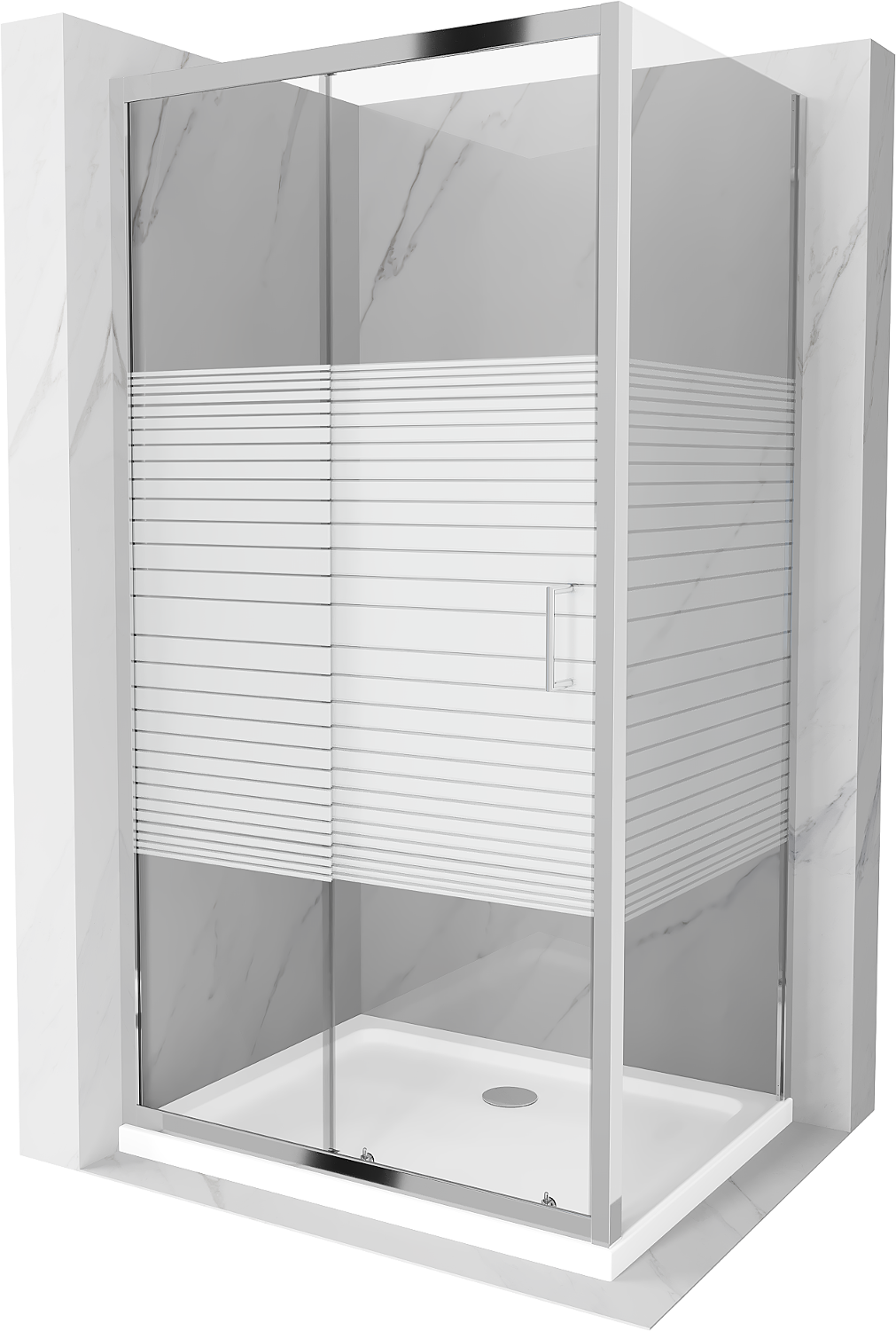Mexen Apia posuvná sprchová kabína 110 x 70 cm, biele pruhy, chróm + vanička Flat - 840-110-070-01-20-4010