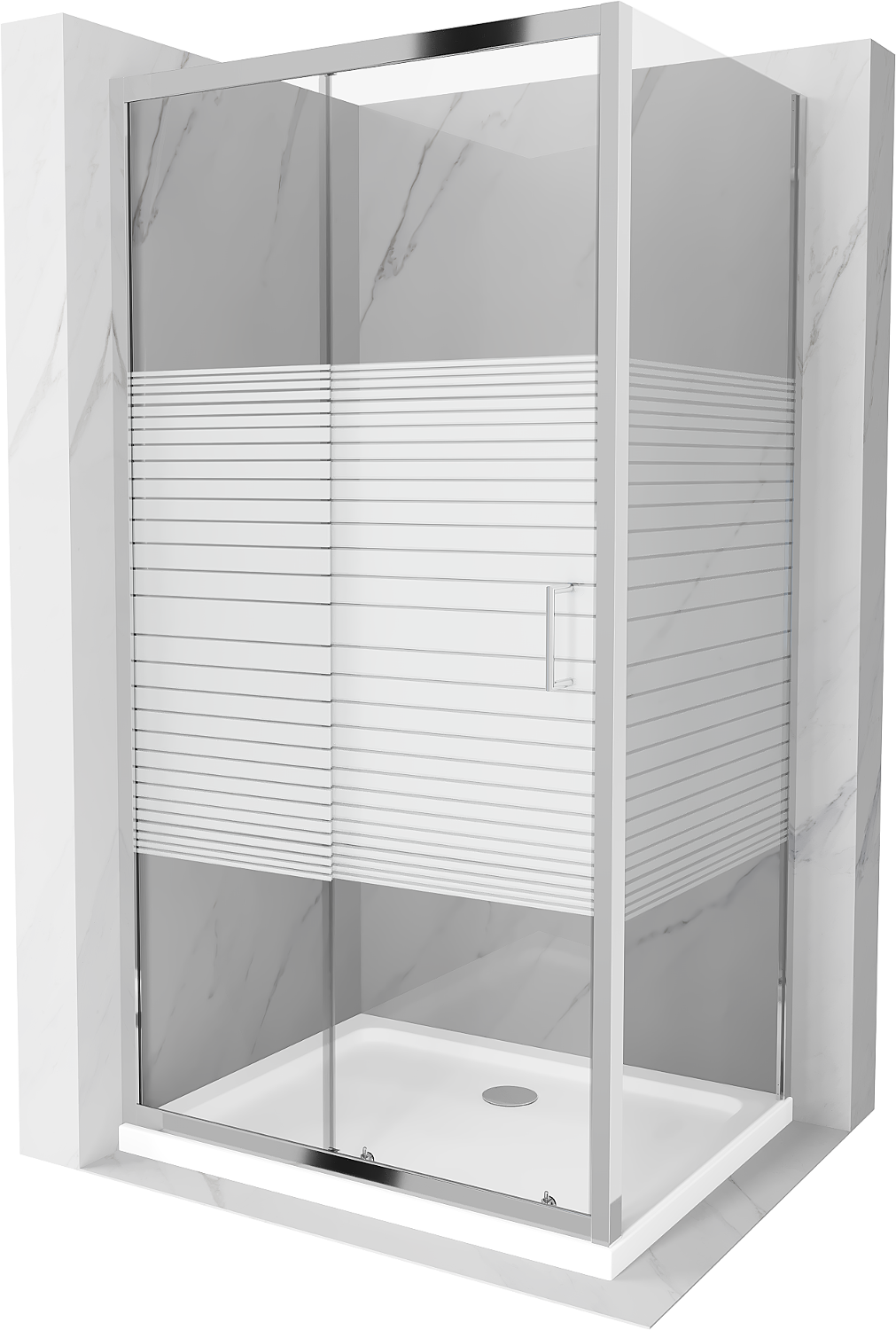 Mexen Apia posuvná sprchová kabína 120 x 90 cm, biele pruhy, chróm + vanička Flat - 840-120-090-01-20-4010