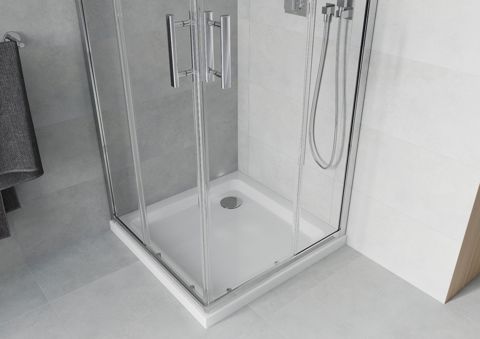 Mexen Rio štvorcová sprchová kabína 80 x 80 cm, transparentná, chróm + plytká vanička Flat, biela - 860-080-080-01-00-4010
