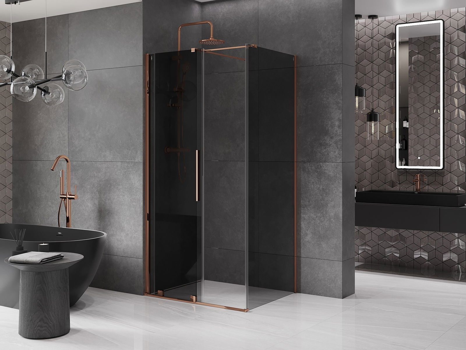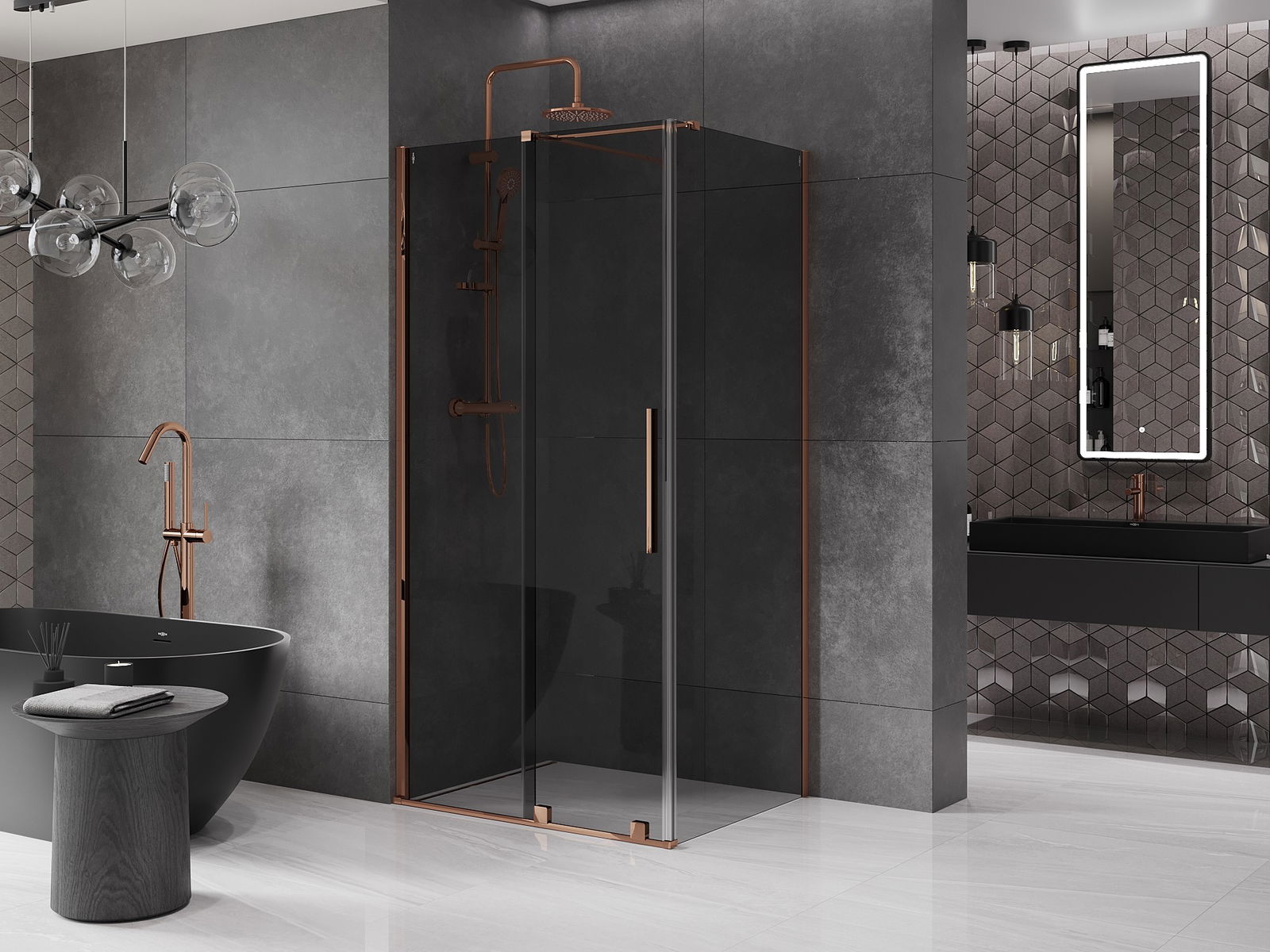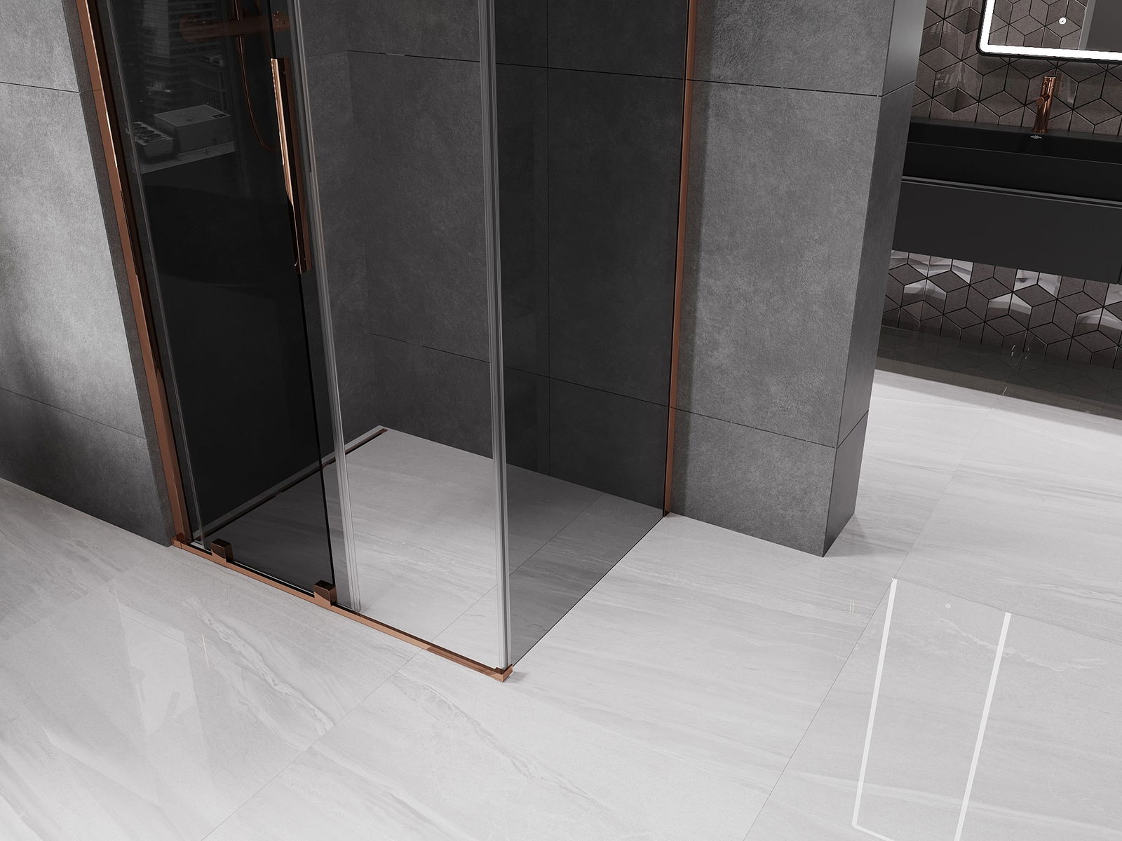 Mexen Velar zasúvacia sprchová kabína 110 x 85 cm, grafit, ružové zlato - 871-110-085-41-60