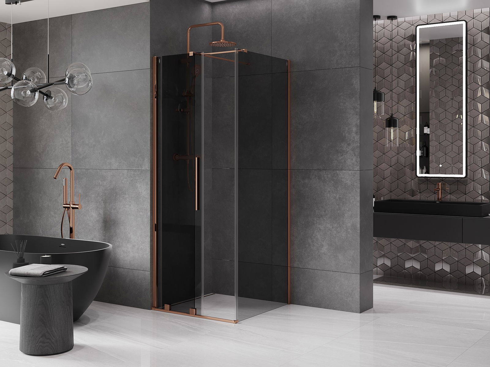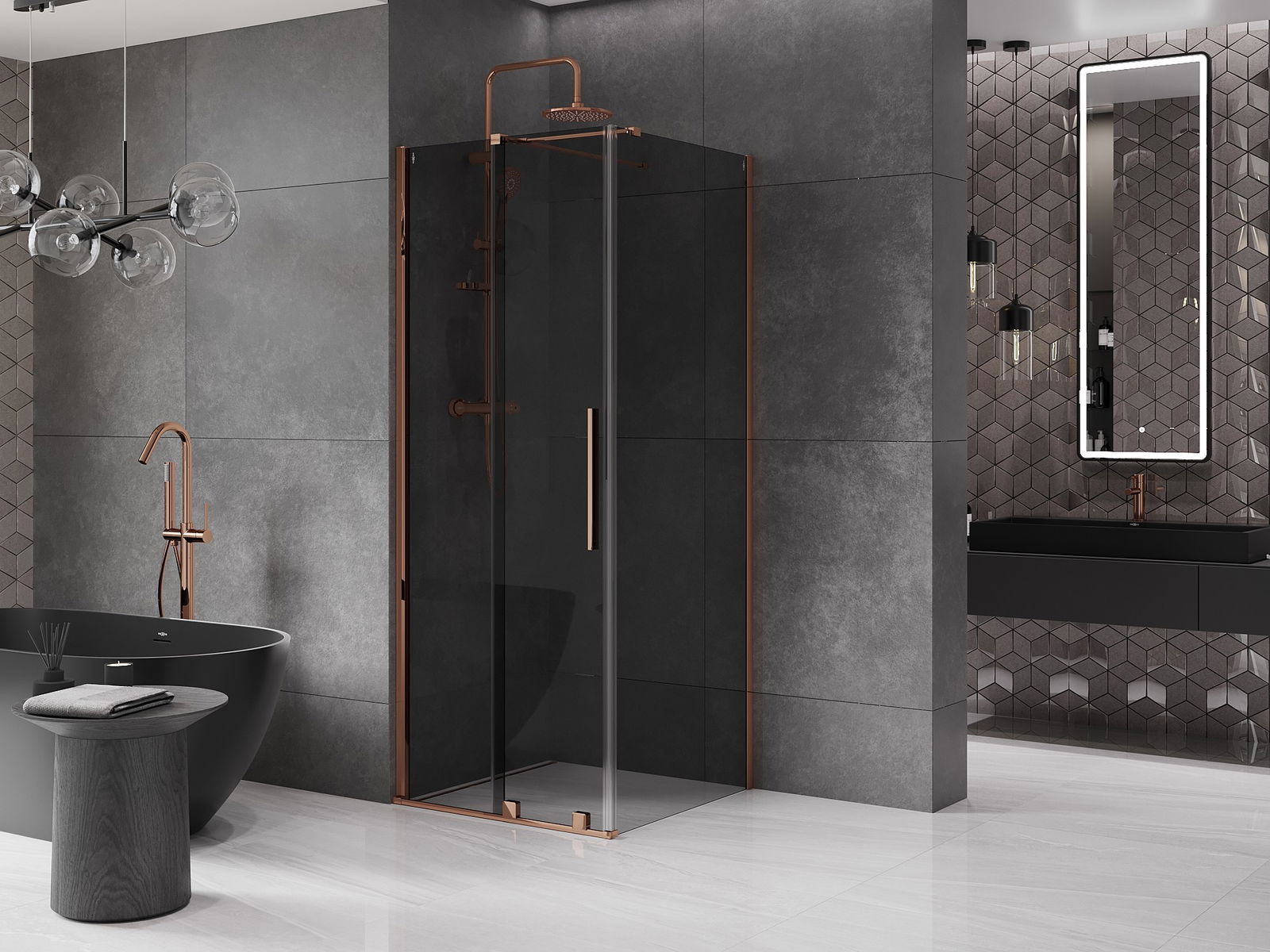 Mexen Velar sprchový kút posuvný 110 x 110 cm, grafit, ružové zlato - 871-110-110-41-60