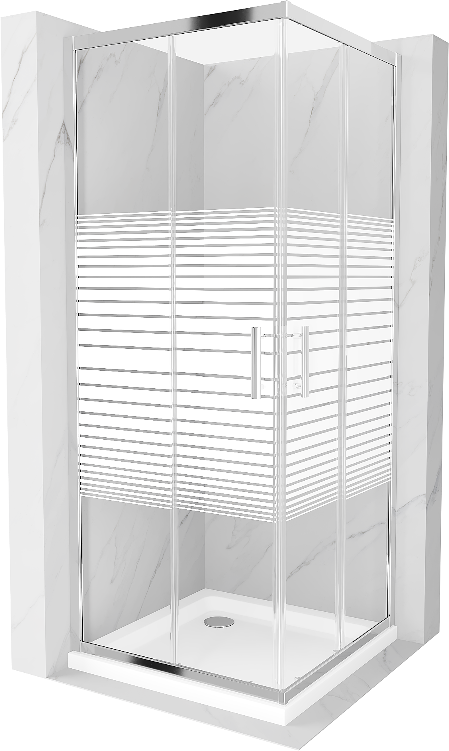 Mexen Rio štvorcový sprchový kút 90 x 90 cm, biele pásy, chróm + vanička Flat, biela - 860-090-090-01-20-4010