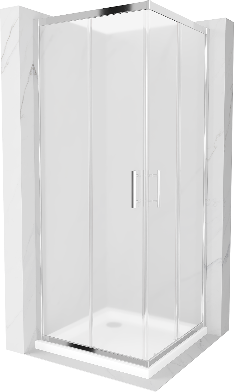 Mexen Rio štvorcová sprchová kabína 90 x 90 cm, matné sklo, chróm + vanička Flat, biela - 860-090-090-01-30-4010