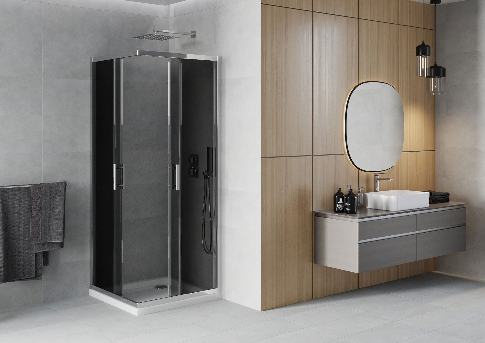 Posuvné dvere sa pohybujú okolo špeciálnych sprievodcov a na ich otvorenie nevyžadujú ďalší priestor, takže budú pracovať v menších kúpeľniach. Vďaka dvojitým valcom vyrobeným z odolného plastu je ich pohyb plynulý.