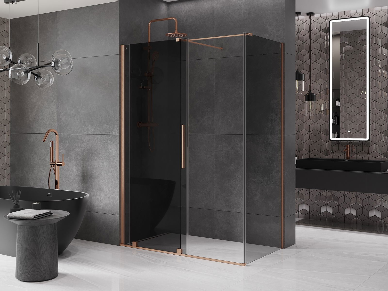 Mexen Velar posuvná sprchovacia kabína 150 x 80 cm, grafit, brúsená meď - 871-150-080-41-65