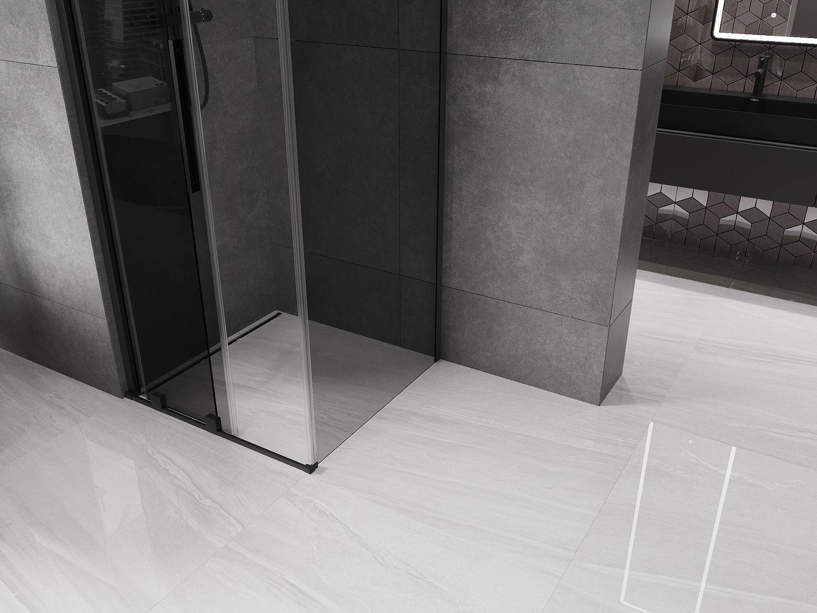 Mexen Velar posuvný sprchový kút 90 x 90 cm, grafit, čierny - 871-090-090-41-70