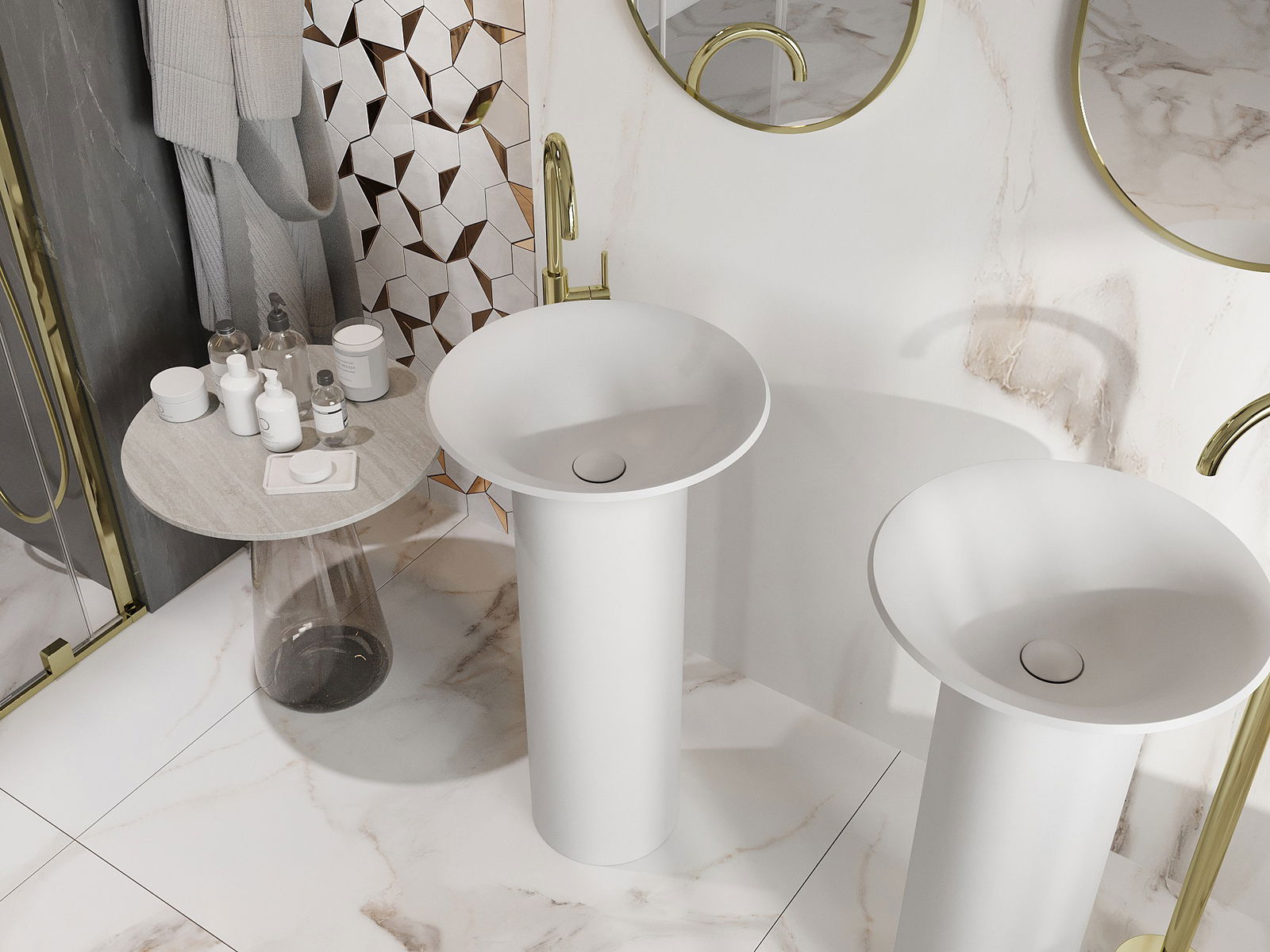 Mexen Leta voľne stojaca umývadlo z konglomerátu 45 x 45 cm, biela matná - 26574500