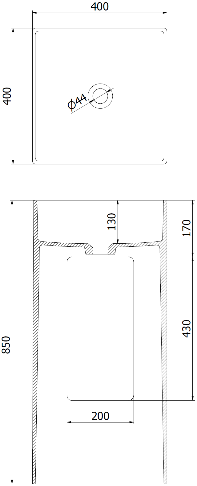 Produkt bol vyrobený z konglomerátu. Vyznačuje sa hladkým povrchom a vysokou odolnosťou voči mechanickému poškodeniu a vzniku škrabancov. Trvalé riešenie, ktoré si zachováva estetický vzhľad počas mnohých rokov používania.