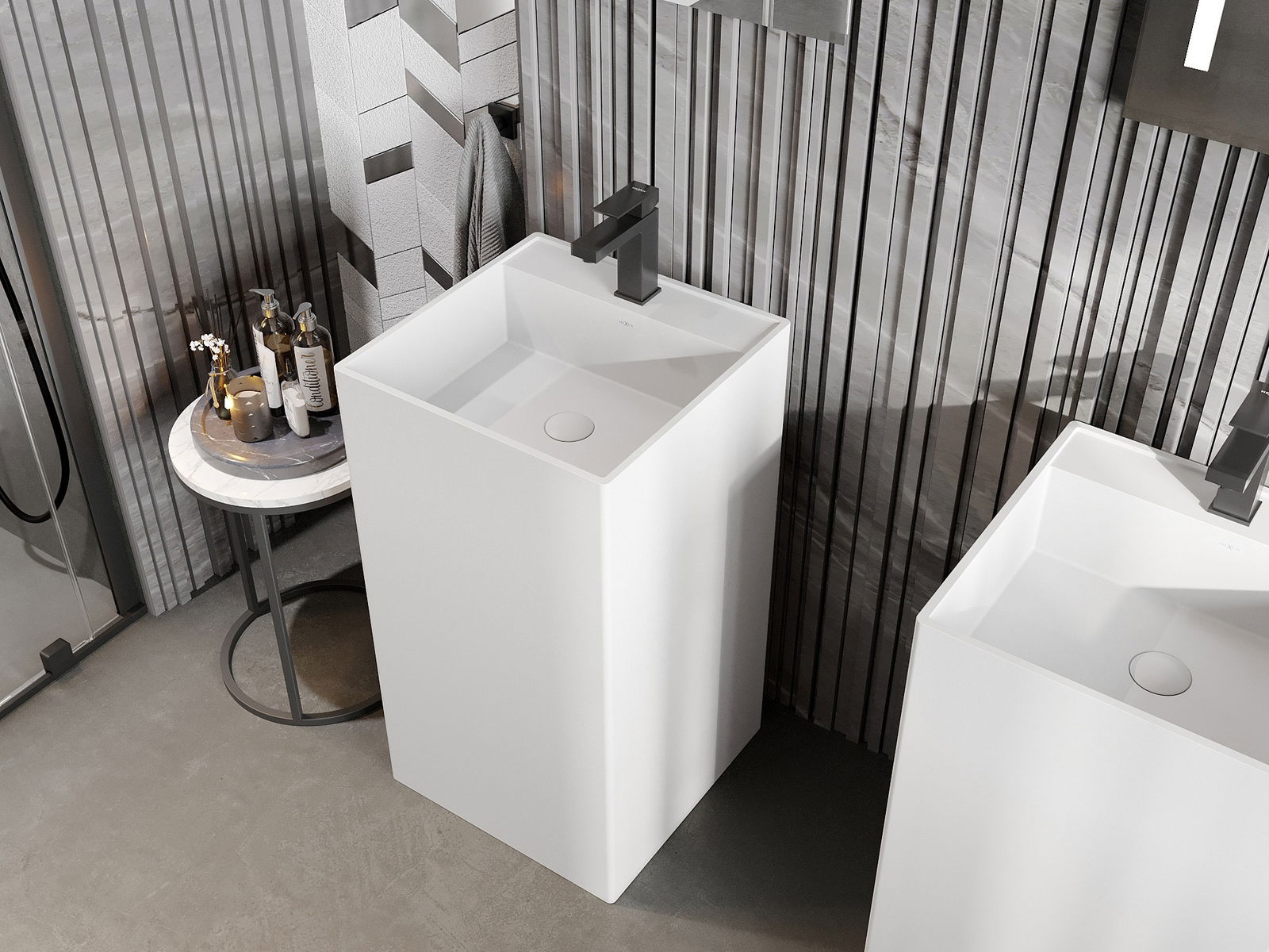 Mexen Belen voľne stojaca umývadlo z konglomerátu 45 x 45 cm, biela matná - 26604500