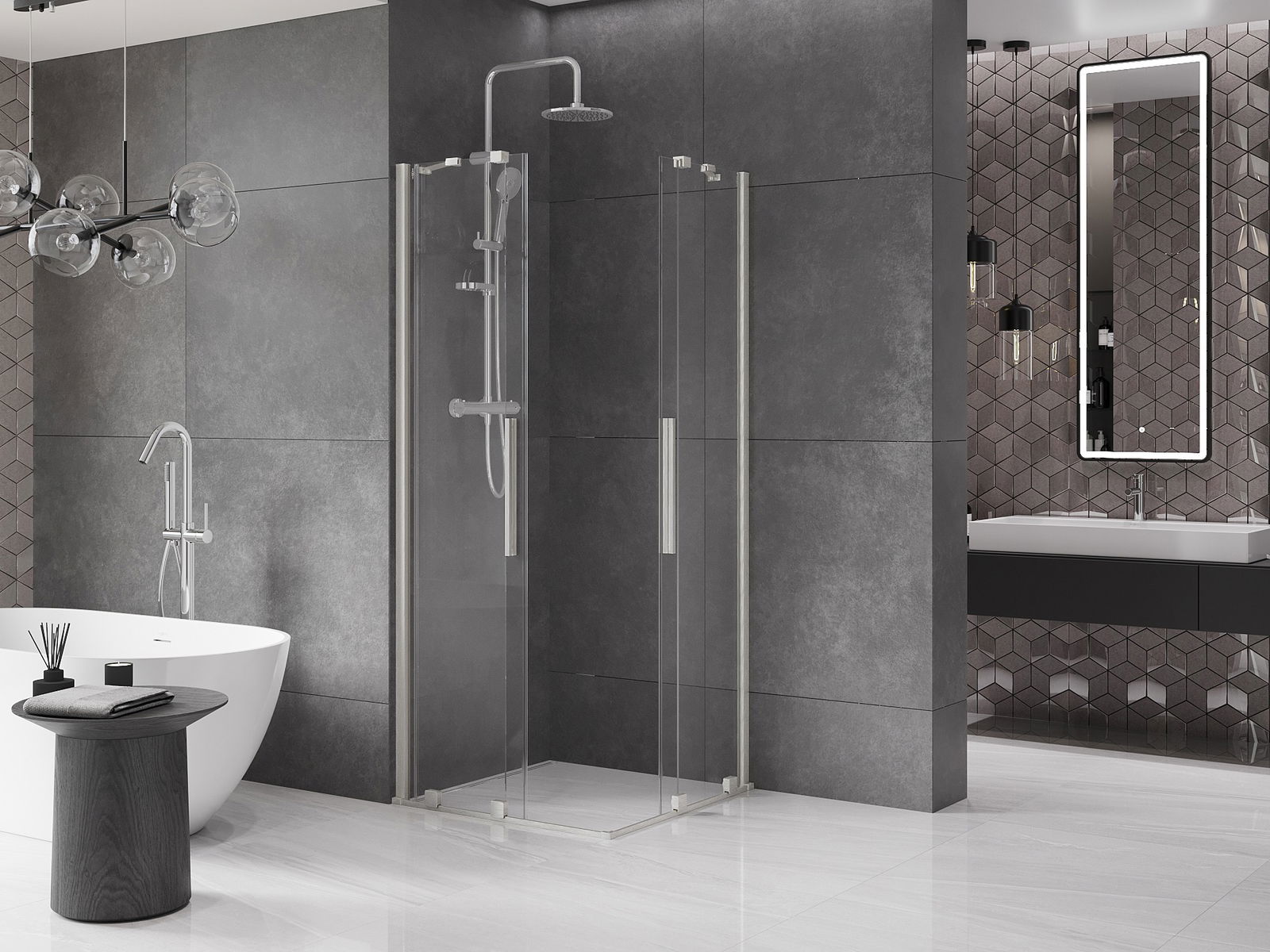 Mexen Velar Duo posuvná sprchová kabína 100 x 100 cm, transparentná, brúsený nikel - 871-100-100-02-97