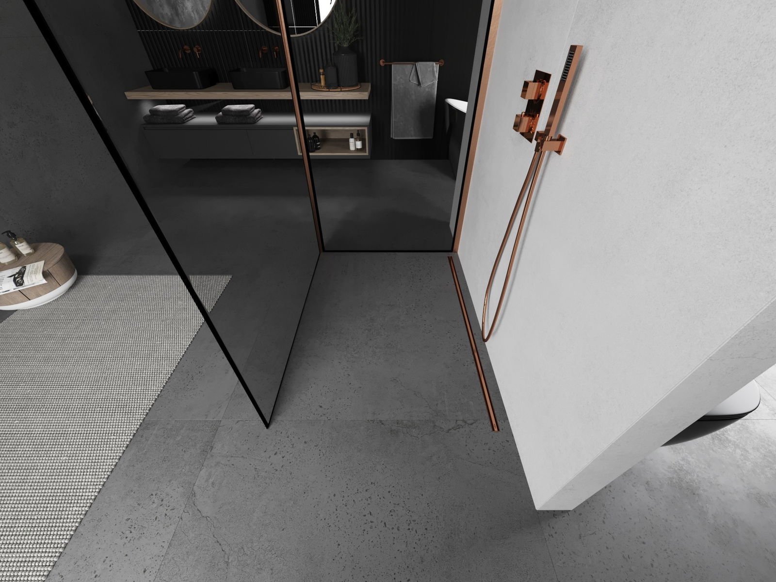 Mexen Kioto sprchová stena Walk-in 110 x 110 cm, čierny rám, brúsená meď - 800-110-212-65-70-110