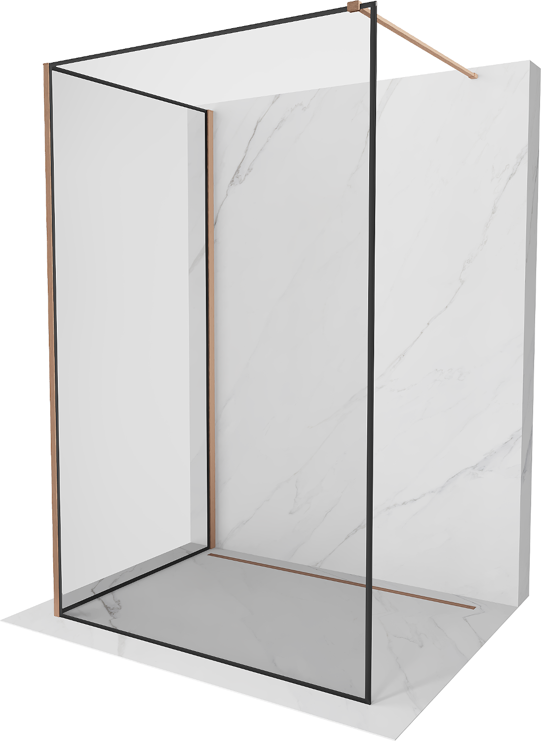 Mexen Kioto sprchová stena Walk-in 120 x 110 cm, čierny rám, brúsená meď - 800-120-212-65-70-110