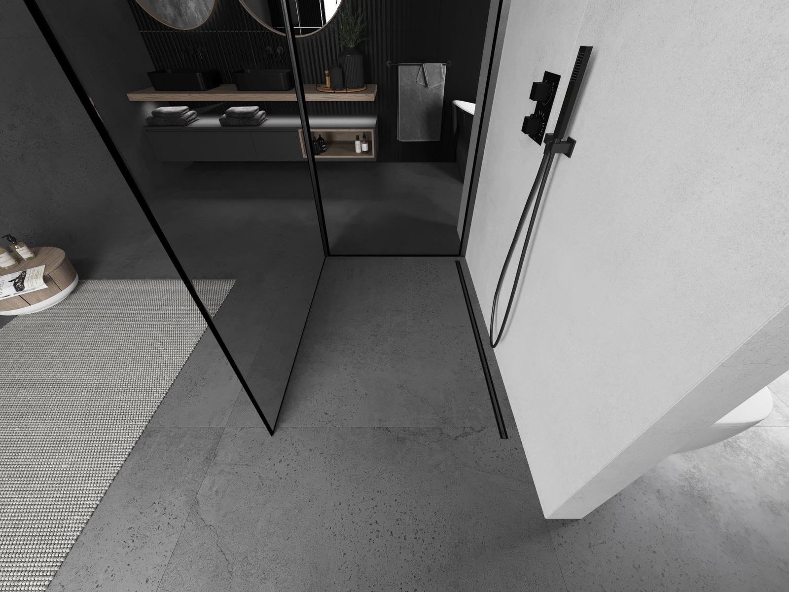 Mexen Kioto sprchová stena Walk-in 130 x 70 cm, čierny rám, brúsená zbraň sivá - 800-130-212-66-70-070