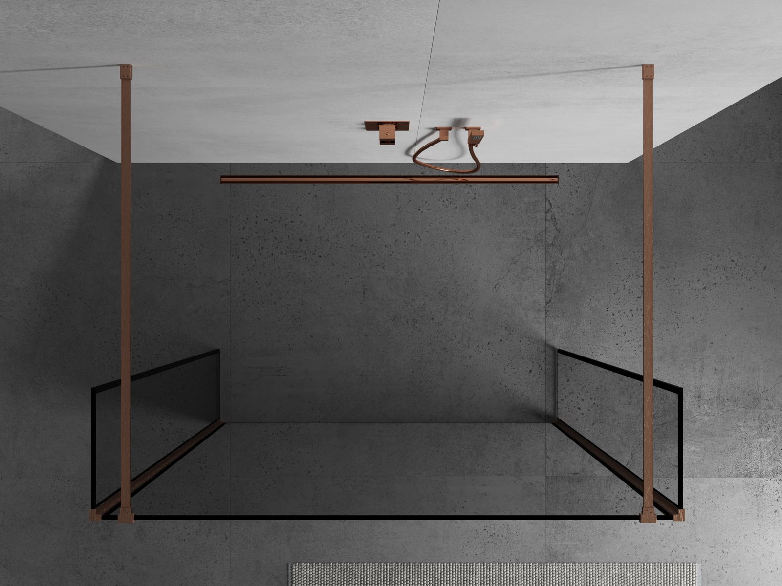 Mexen Kioto voľne stojaca sprchová stena 100 x 30 x 30 cm, čierny rám, brúsená meď - 800-100-030-222-65-70-030