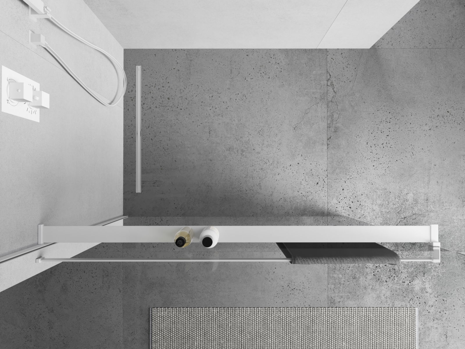 Mexen polica na sprchovú stenu s relingom na uteráky, biela - 800-02-20