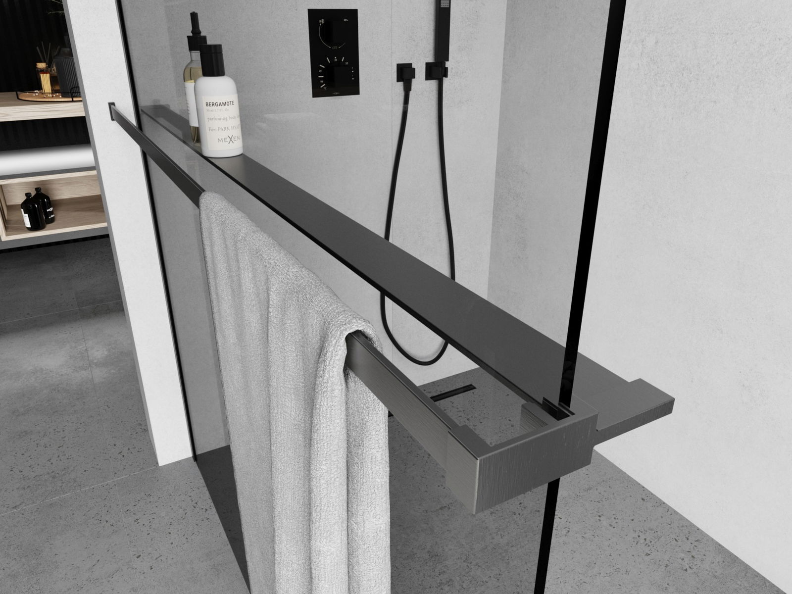 Mexen polička do sprchovej steny s tyčou na uteráky, brúsená gun gray - 800-02-66