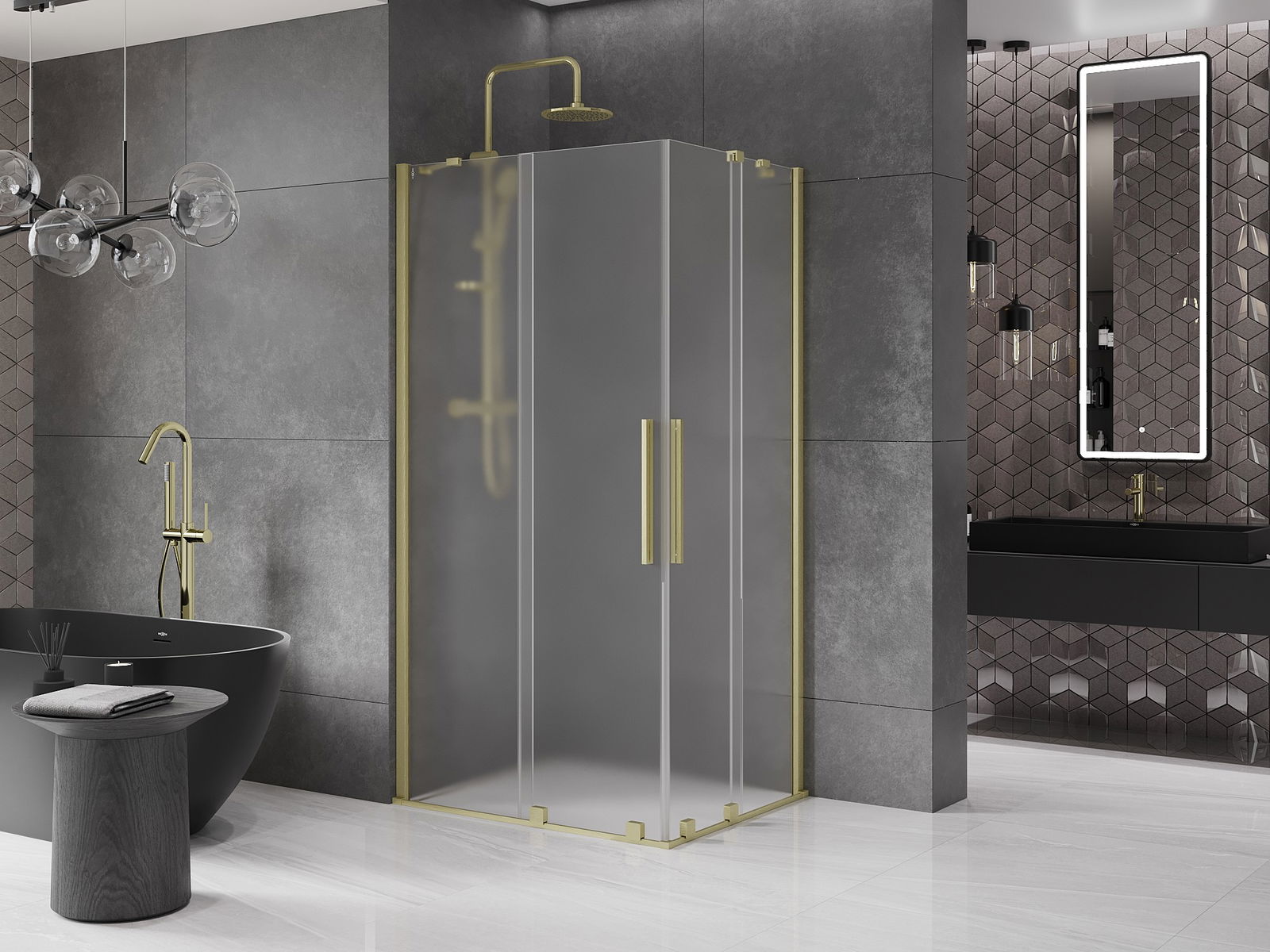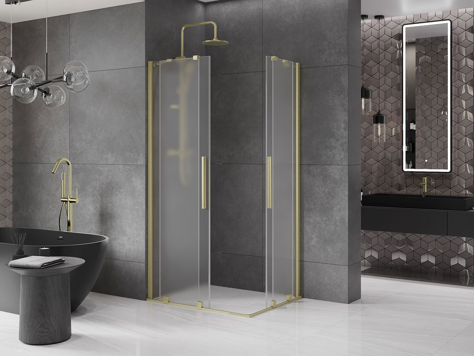 Mexen Velar Duo posuvná sprchová kabína 90 x 80 cm, mrazené sklo, zlatá kartáčovaná - 871-090-080-32-55