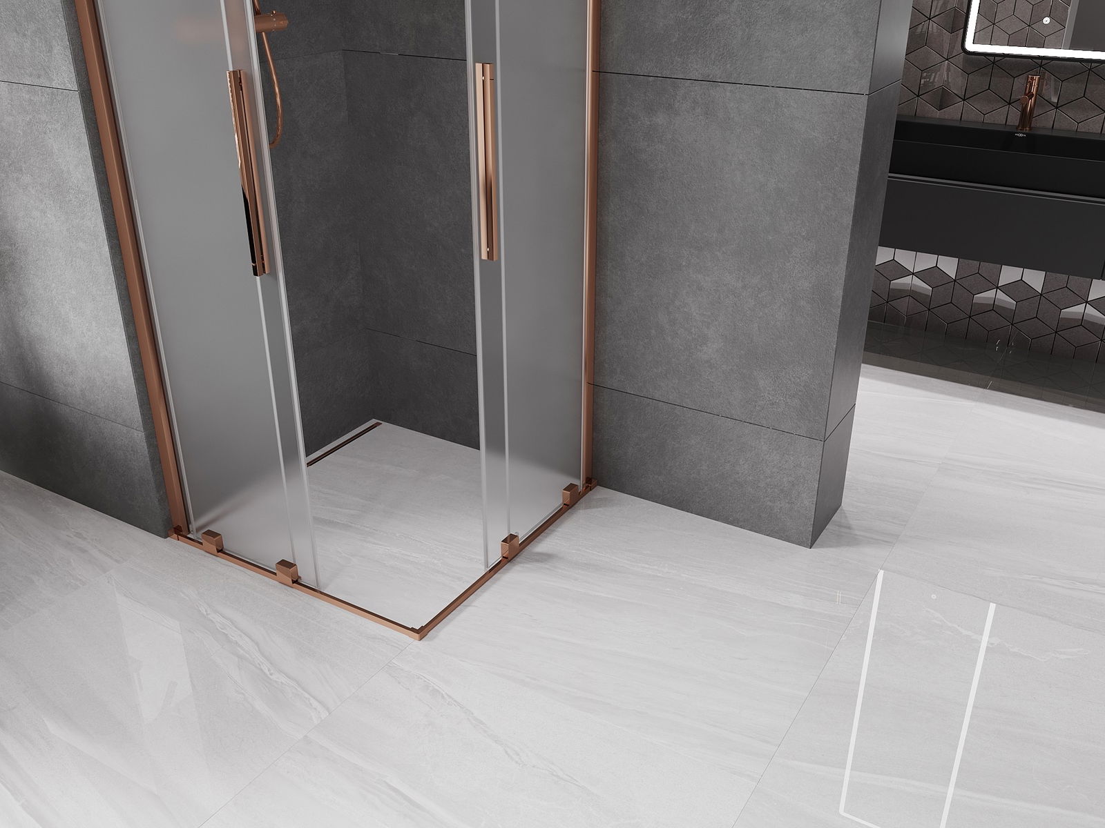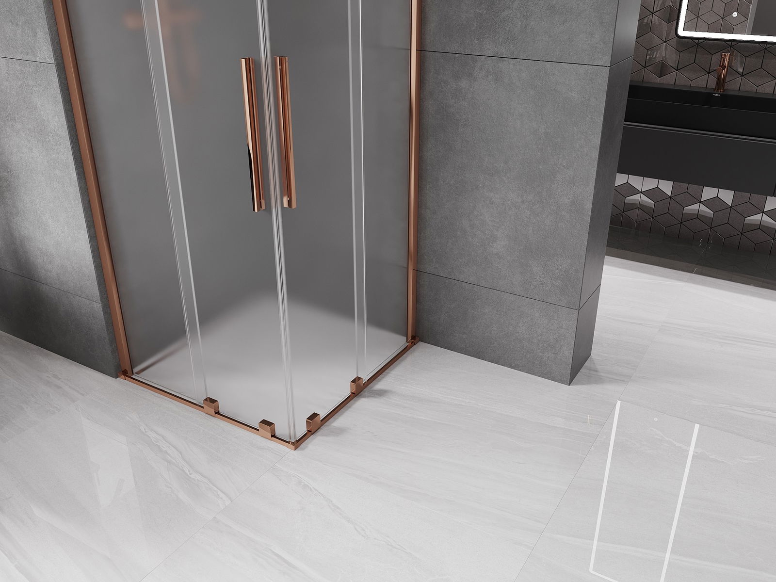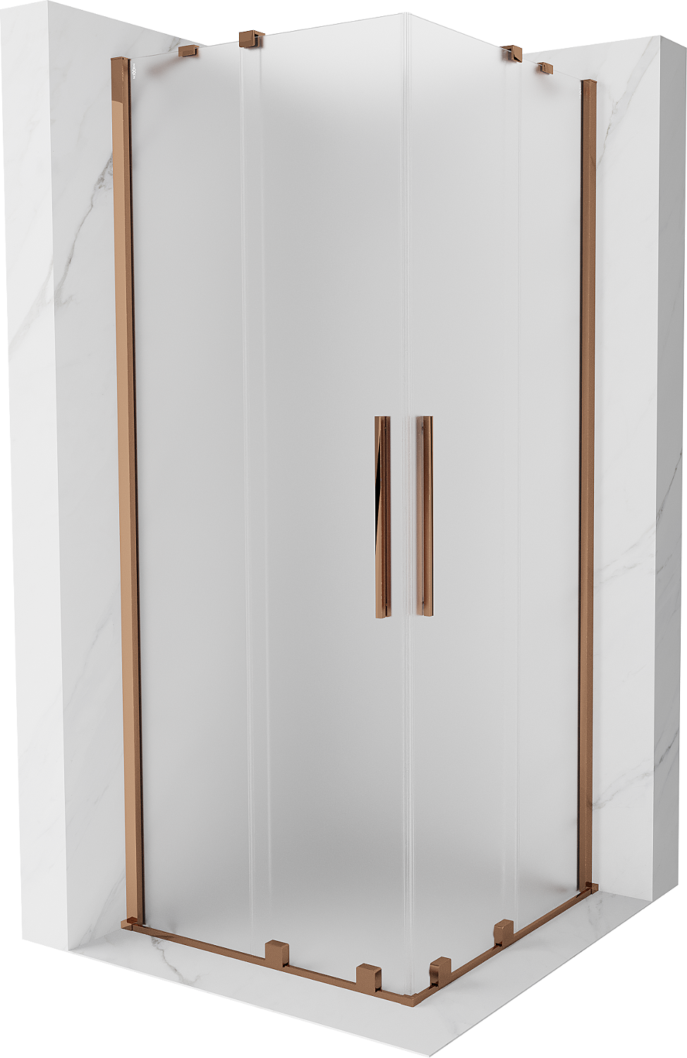 Mexen Velar Duo posuvná sprchová kabína 100 x 100 cm, námraza, ružové zlato - 871-100-100-32-60