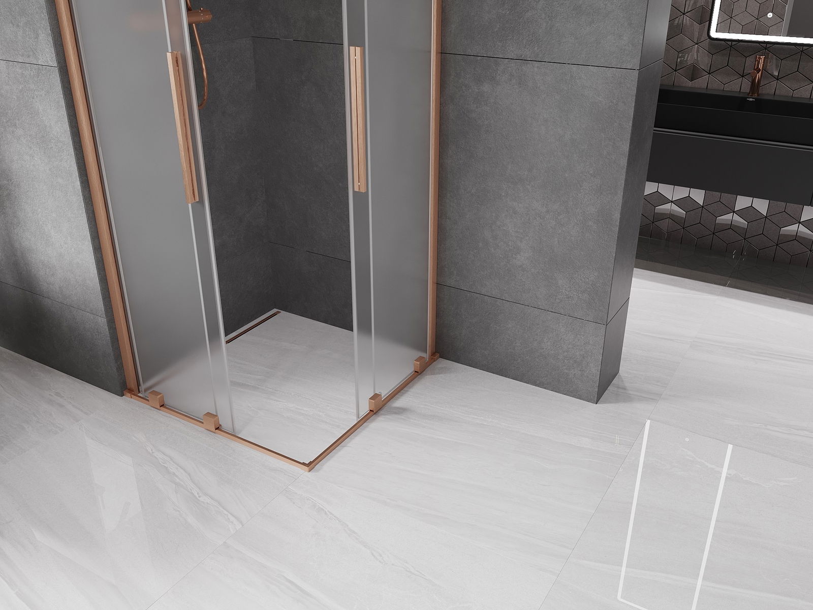 Mexen Velar Duo zasúvacia sprchová kabína 80 x 80 cm, mrazivý vzhľad, brúsená meď - 871-080-080-32-65