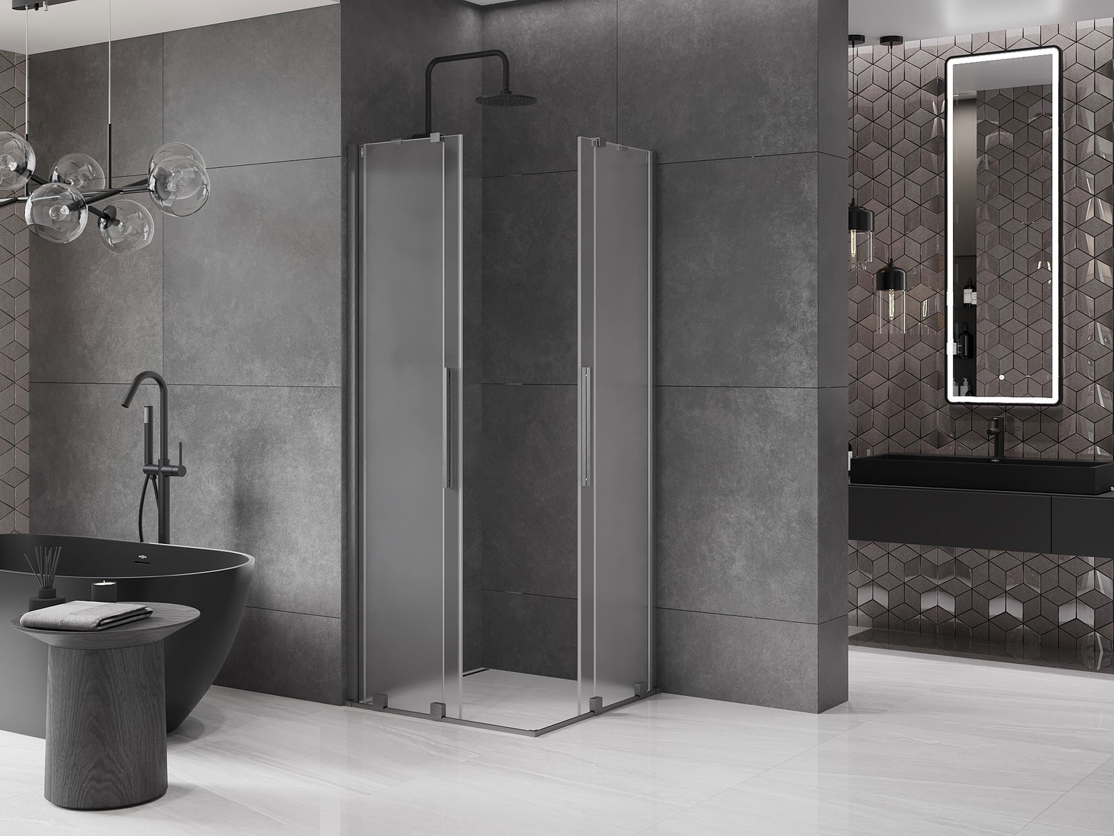 Praktický a pohodlný držiak je vyrobený z nehrdzavejúcej ocele. Módny tvar v kombinácii s povrchovou úpravou prispôsobenou farbe profilov dodáva celej konštrukcii moderný a štýlový vzhľad, podčiarkujúc estetiku každej kúpeľne.