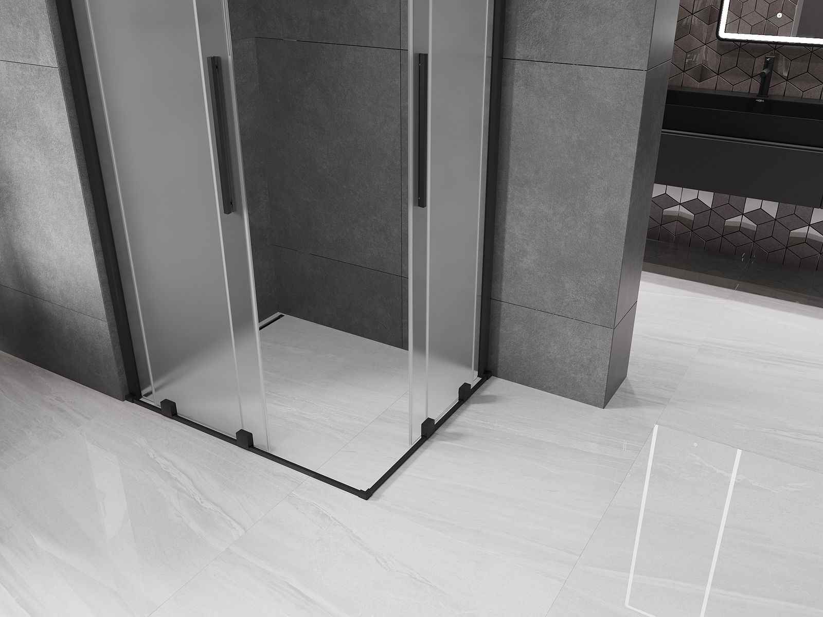 Mexen Velar Duo posuvná sprchová kabína 90 x 80 cm, mrazivá, čierna - 871-090-080-32-70