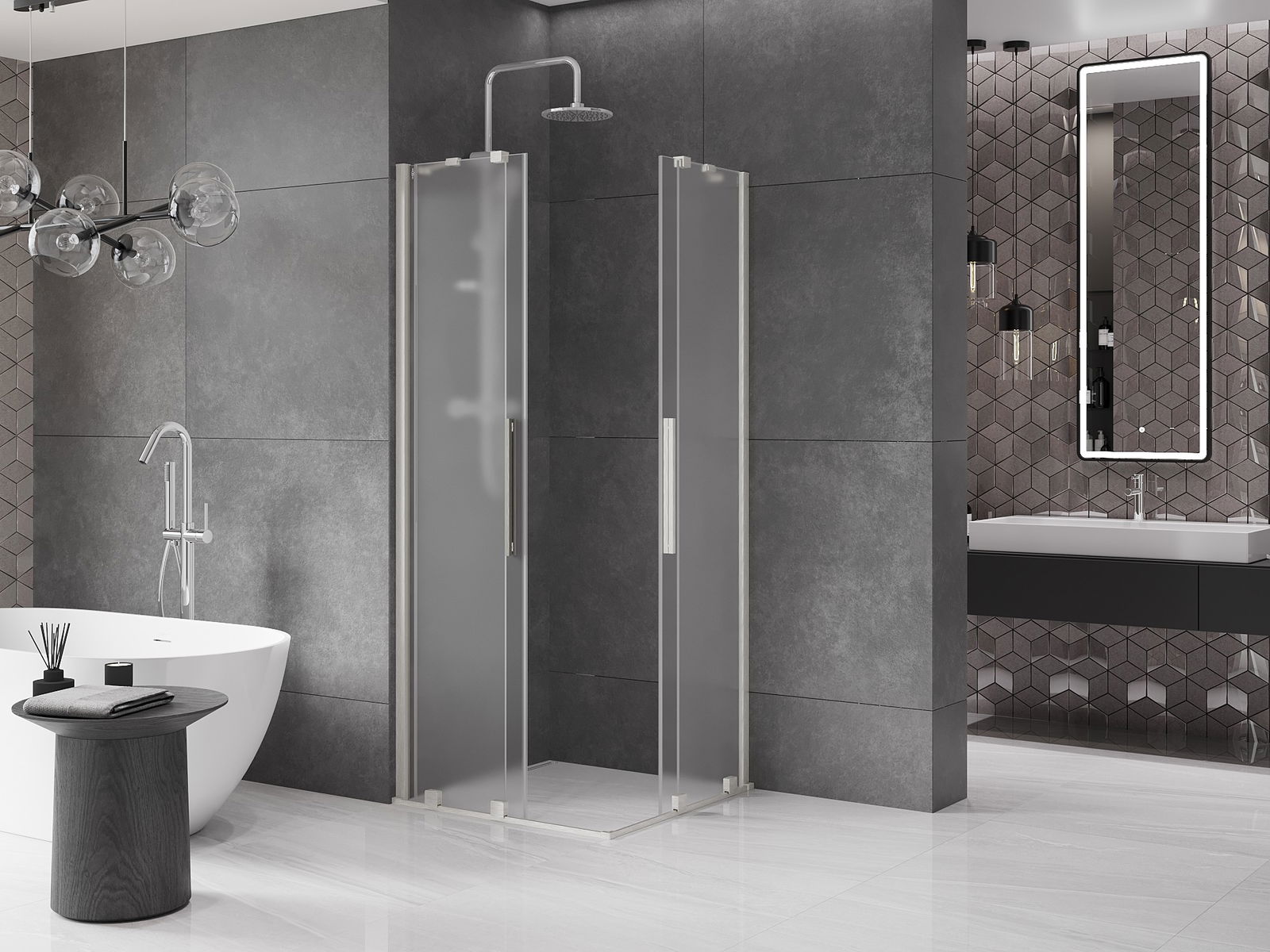 Mexen Velar Duo sprchovací kút posuvný 80 x 80 cm, mrazivý, brúsený nikel - 871-080-080-32-97