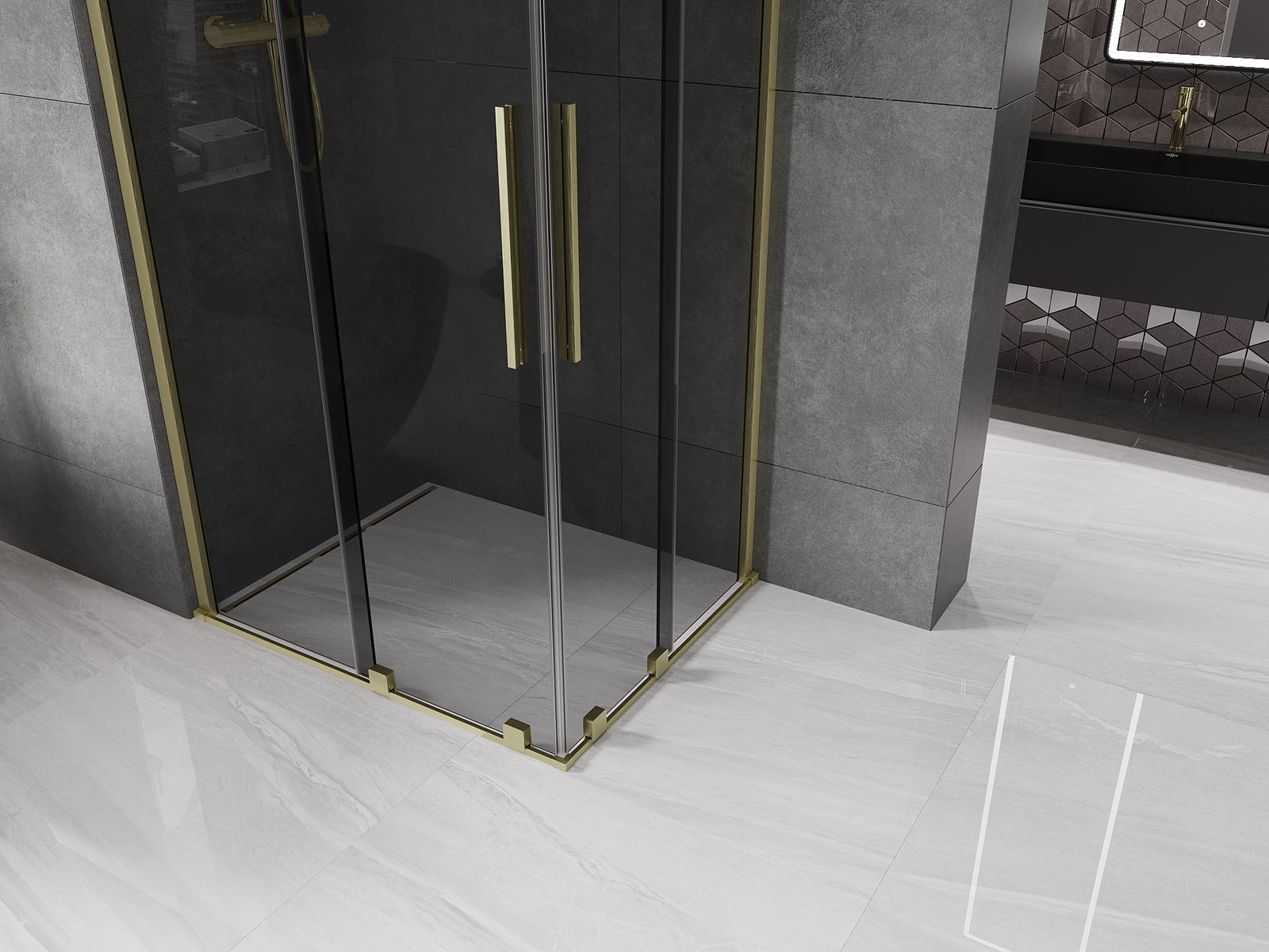 Mexen Velar Duo posuvná sprchová kabína 90 x 80 cm, grafitová, zlatá kartáčovaná - 871-090-080-42-55