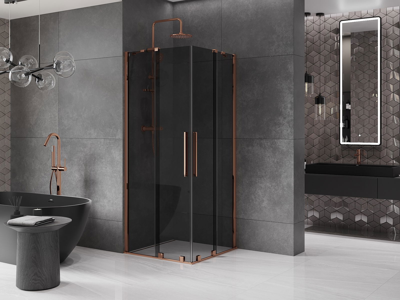 Mexen Velar Duo sprchový kút posuvný 100 x 100 cm, grafit, ružové zlato - 871-100-100-42-60