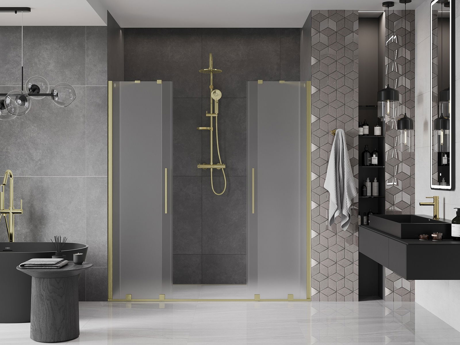 Mexen Velar Duo sprchové dvere posuvné 200 cm, mráz, zlaté kartáčované - 871-200-000-32-55