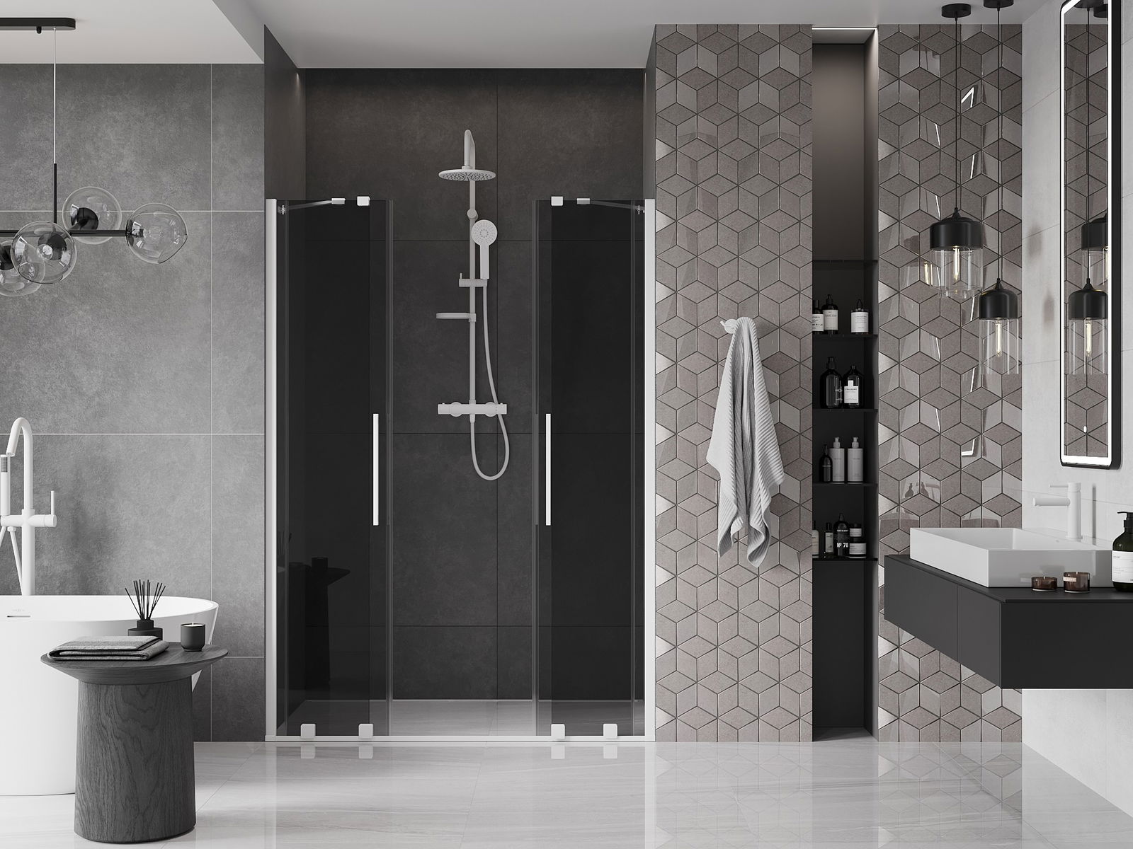 Praktický a pohodlný držiak je vyrobený z nehrdzavejúcej ocele. Módny tvar v kombinácii s povrchovou úpravou prispôsobenou farbe profilov dodáva celej konštrukcii moderný a štýlový vzhľad, podčiarkujúc estetiku každej kúpeľne.