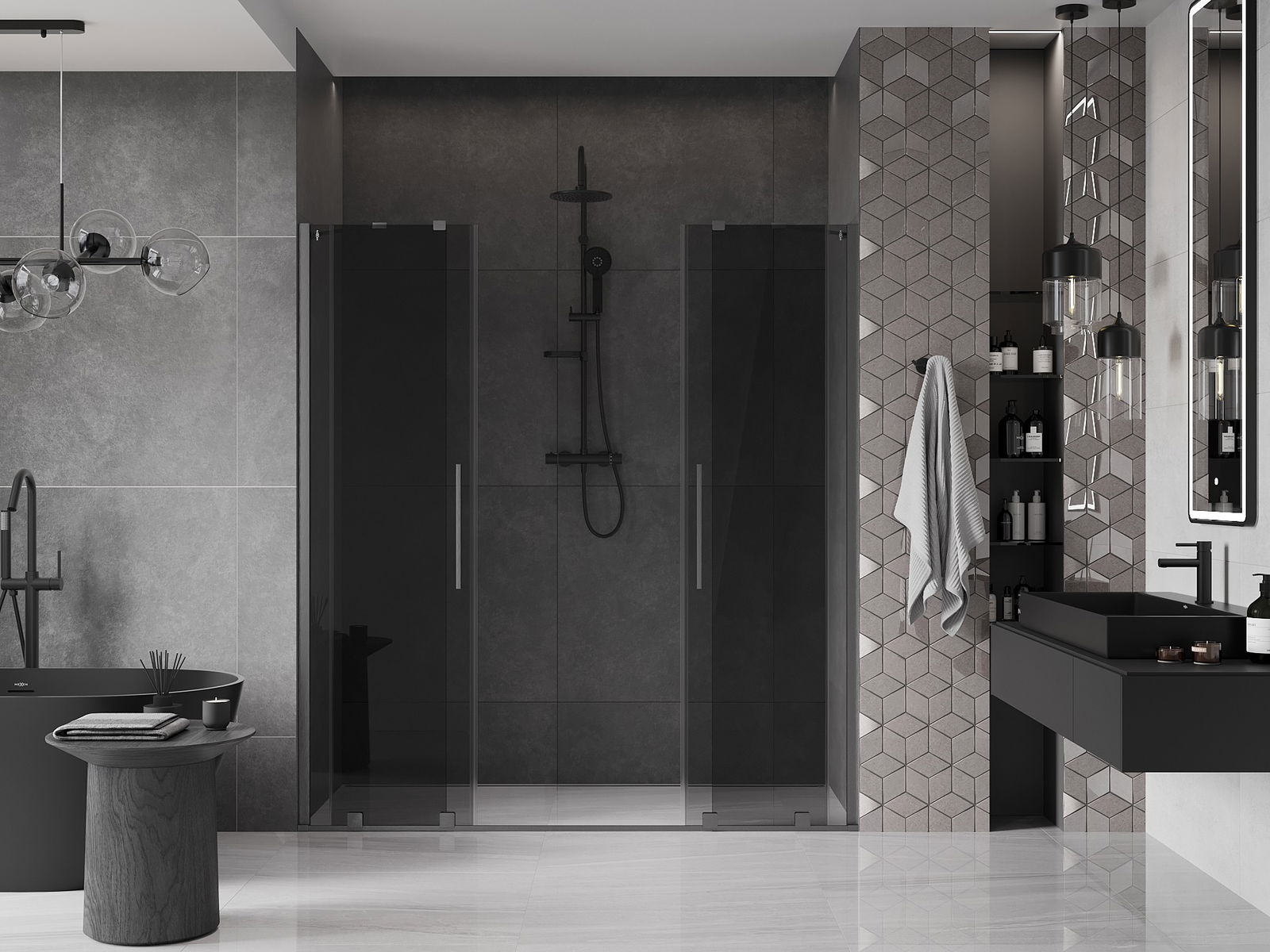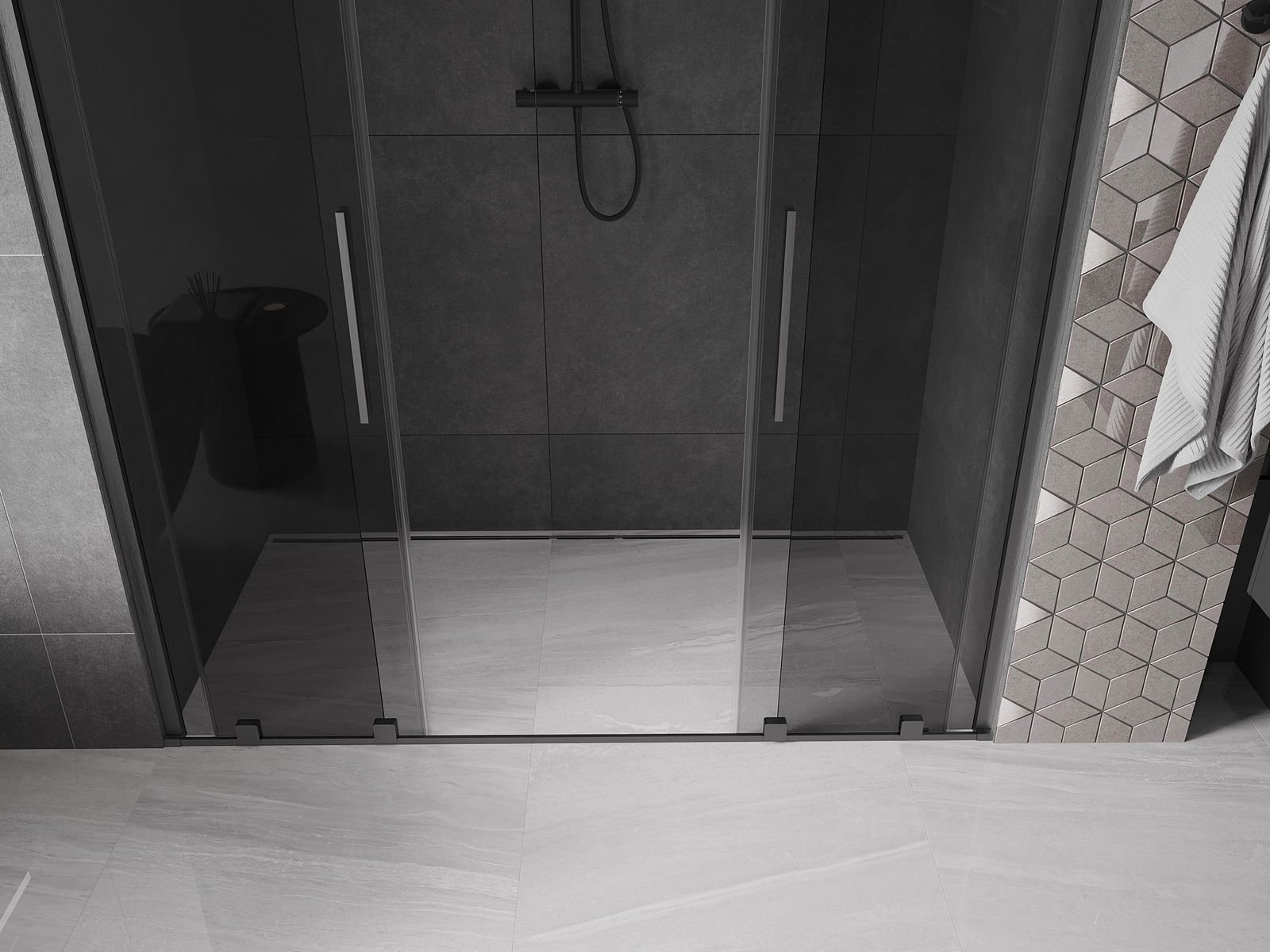 Mexen Velar Duo sprchové dvere posuvné 170 cm, grafit, brúsená gun gray - 871-170-000-42-66