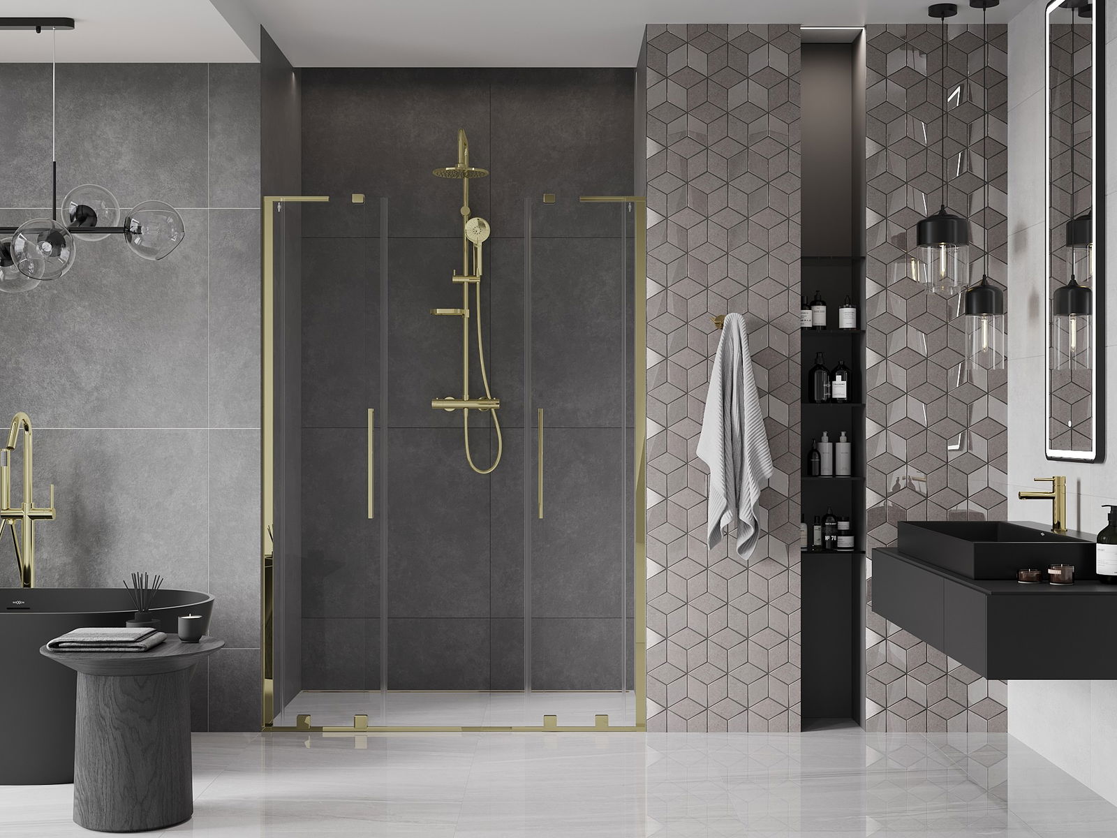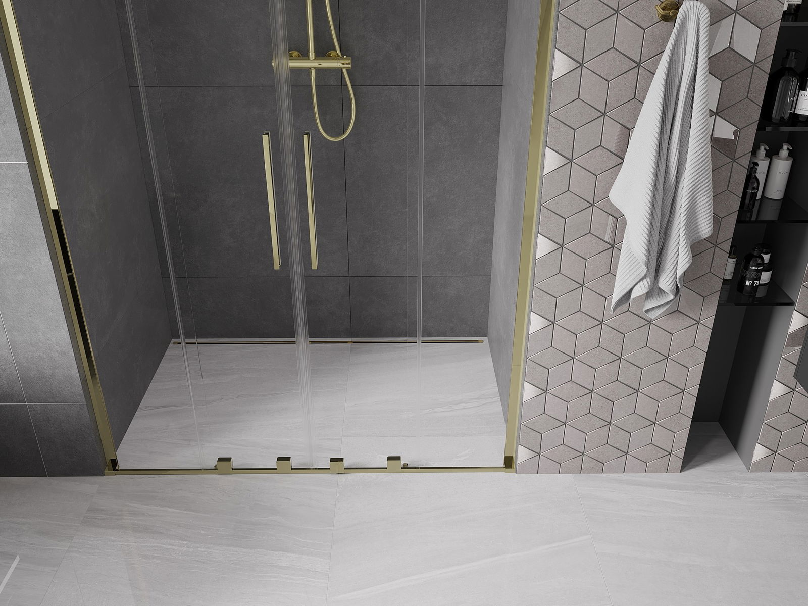 Mexen Velar L Duo posuvné sprchové dvere 140 cm, transparentné, zlaté - 871-140-003-02-50