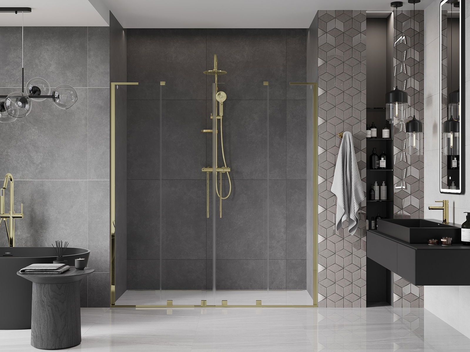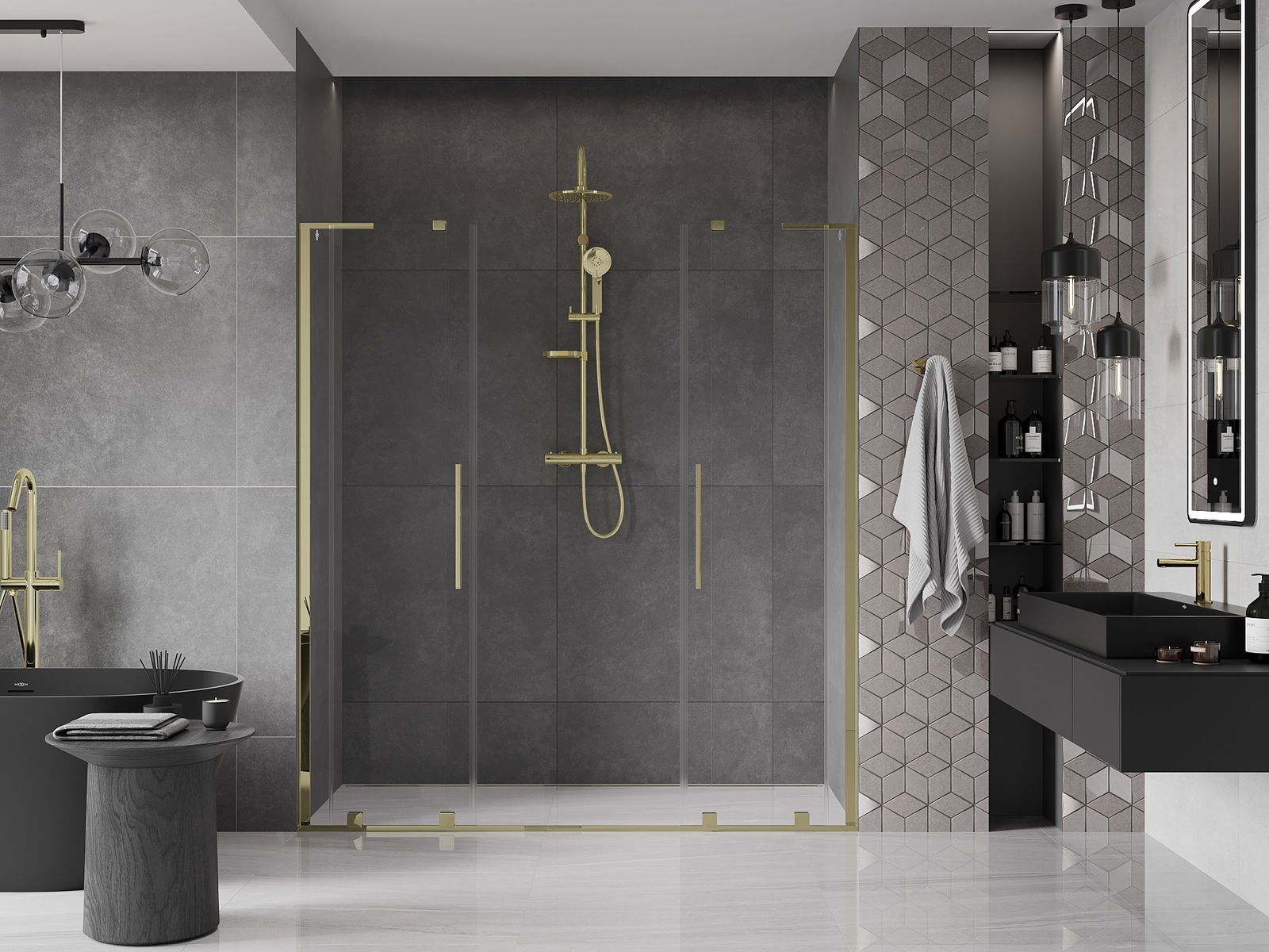 Mexen Velar L Duo sprchové dvere posuvné 180 cm, transparentné, zlaté - 871-180-003-02-50
