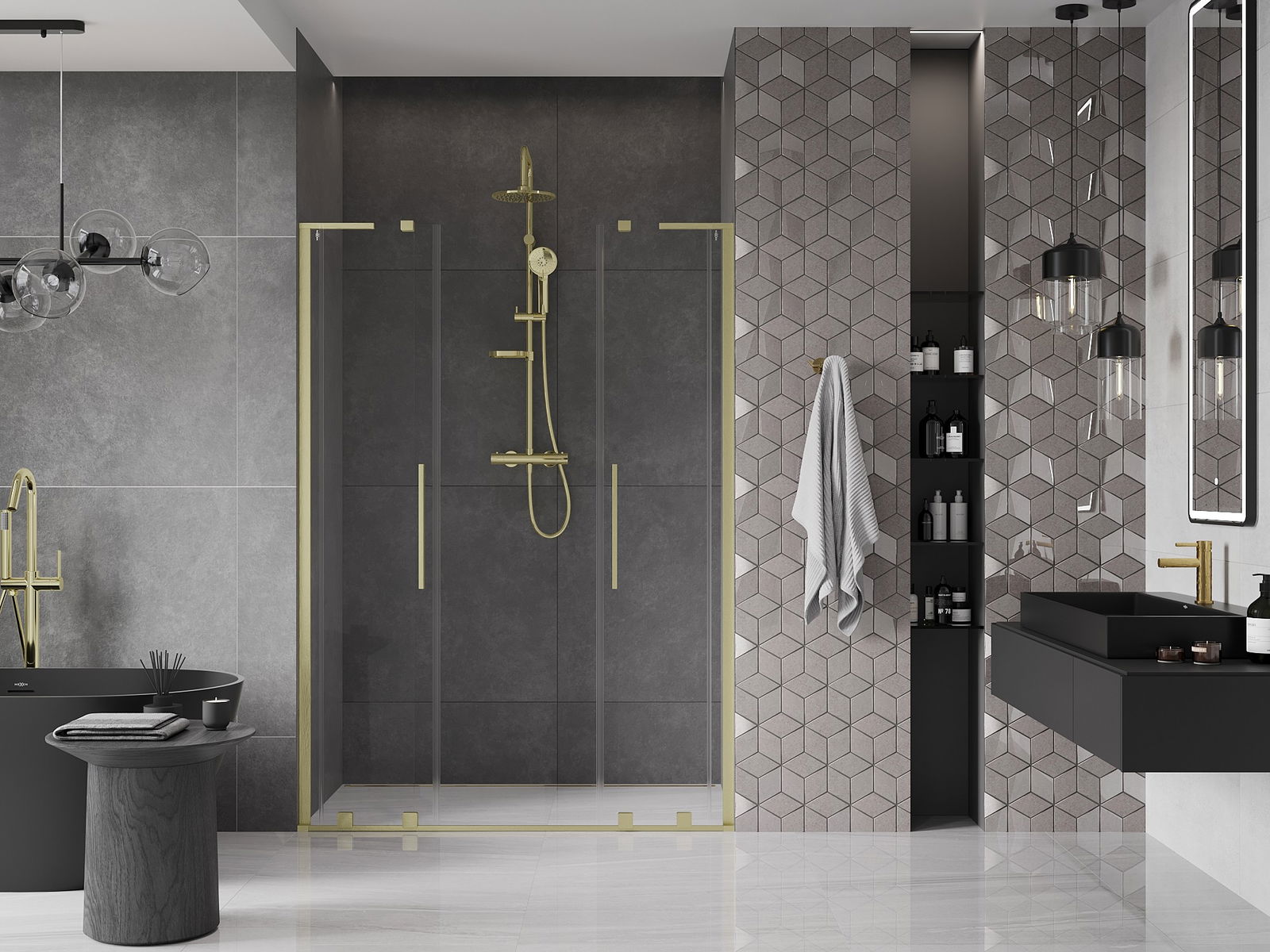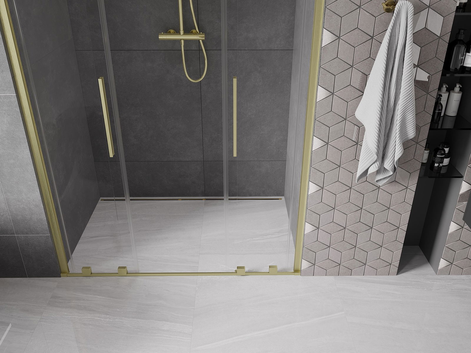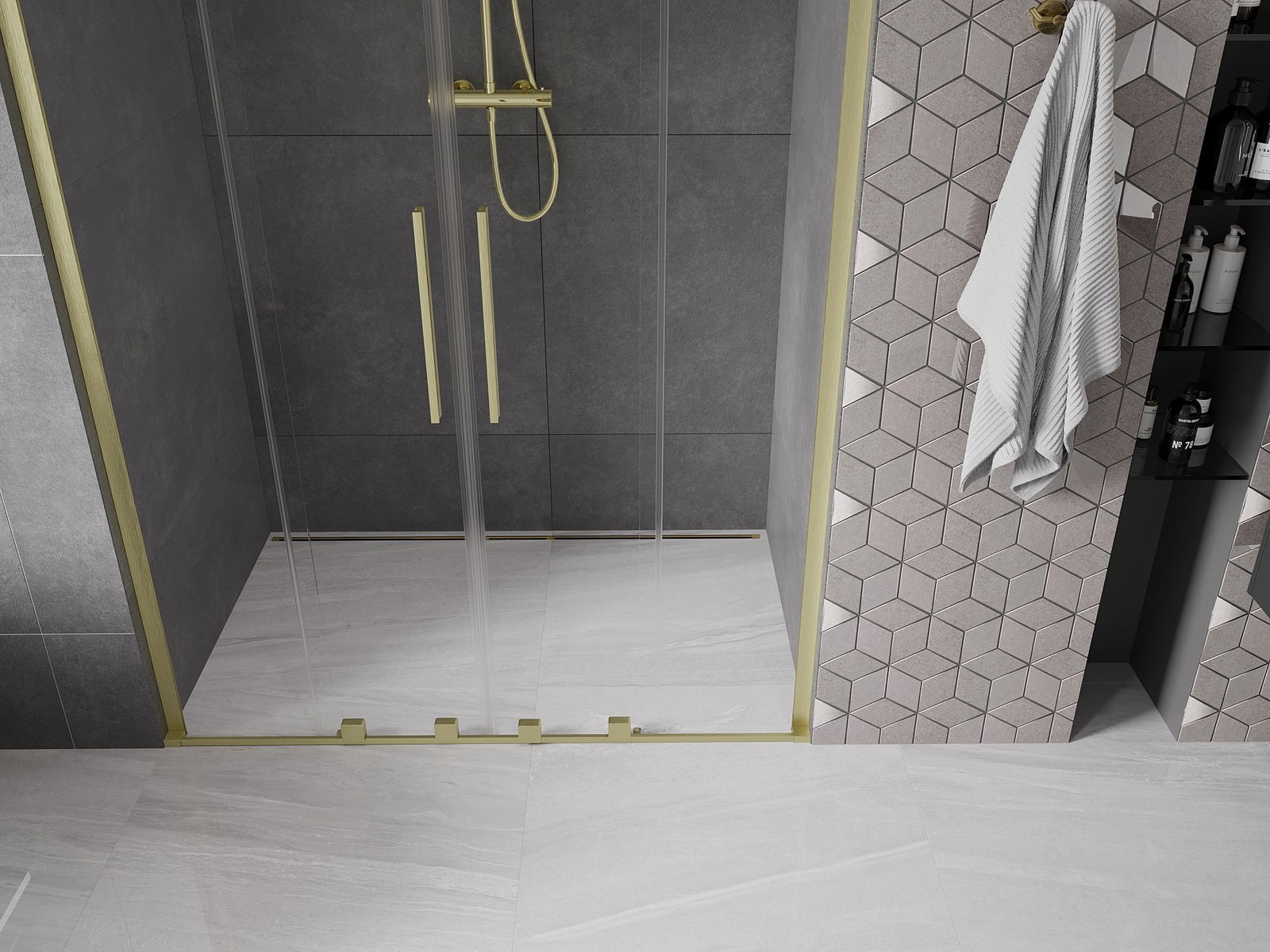 Praktický a pohodlný držiak je vyrobený z nehrdzavejúcej ocele. Módny tvar v kombinácii s povrchovou úpravou prispôsobenou farbe profilov dodáva celej konštrukcii moderný a štýlový vzhľad, podčiarkujúc estetiku každej kúpeľne.