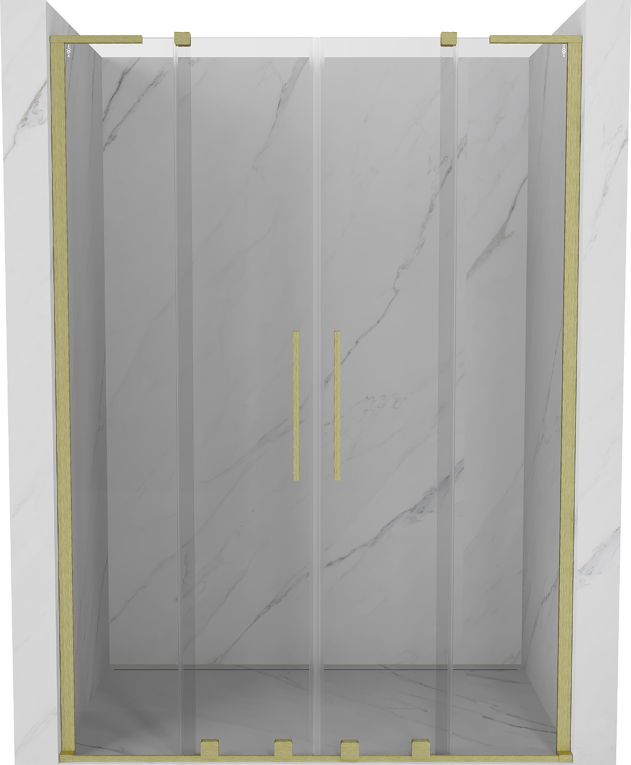 Mexen Velar L Duo posuvné sprchové dvere 160 cm, transparentné, zlaté kartáčované - 871-160-003-02-55
