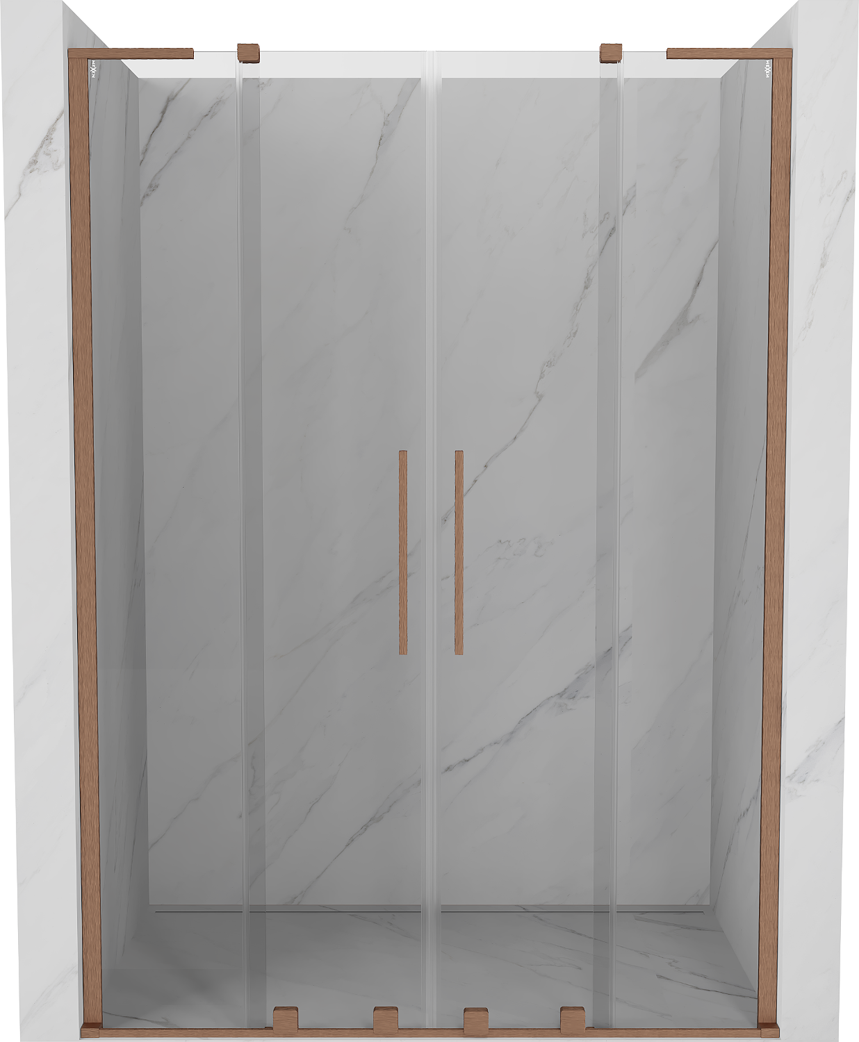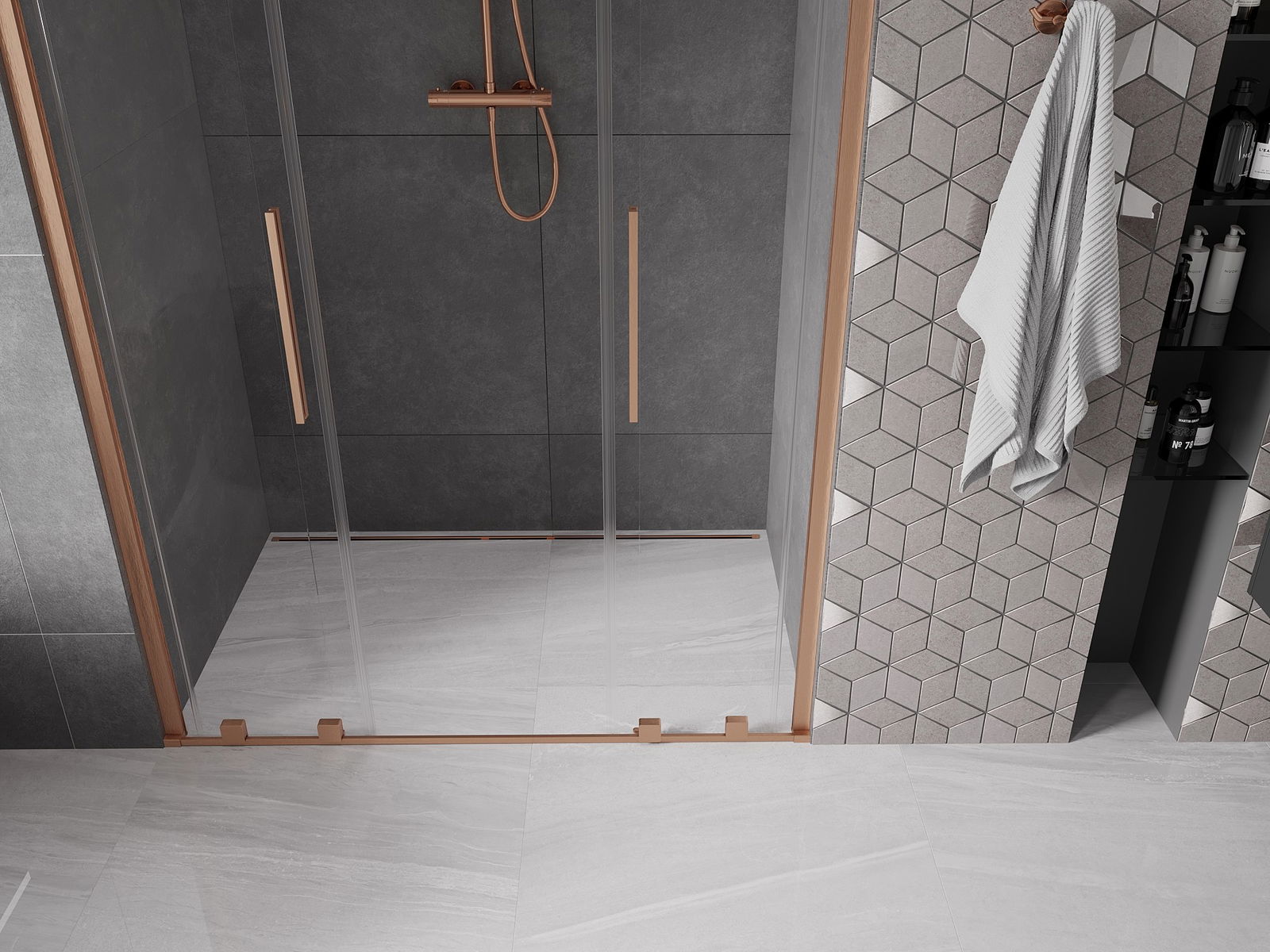 Mexen Velar L Duo posuvné sprchové dvere 140 cm, transparentné, brúsená meď - 871-140-003-02-65