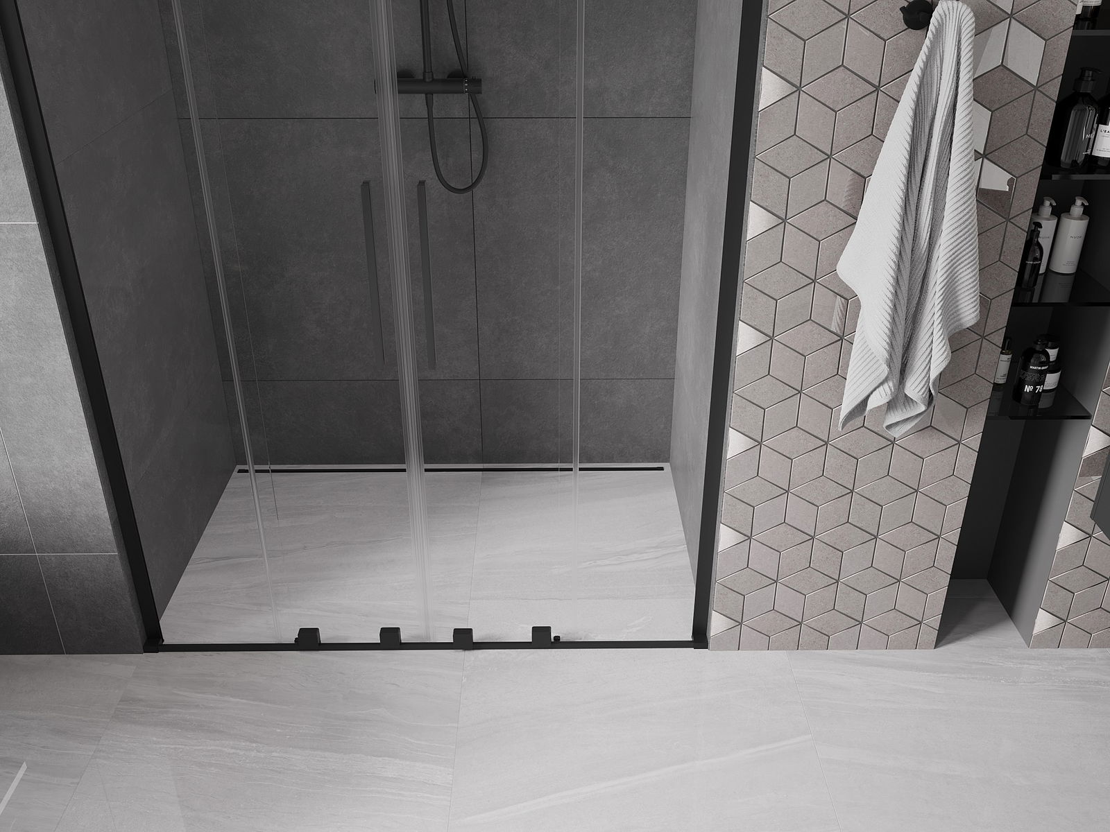 Mexen Velar L Duo sprchové dvere posuvné 150 cm, priehľadné, čierne - 871-150-003-02-70